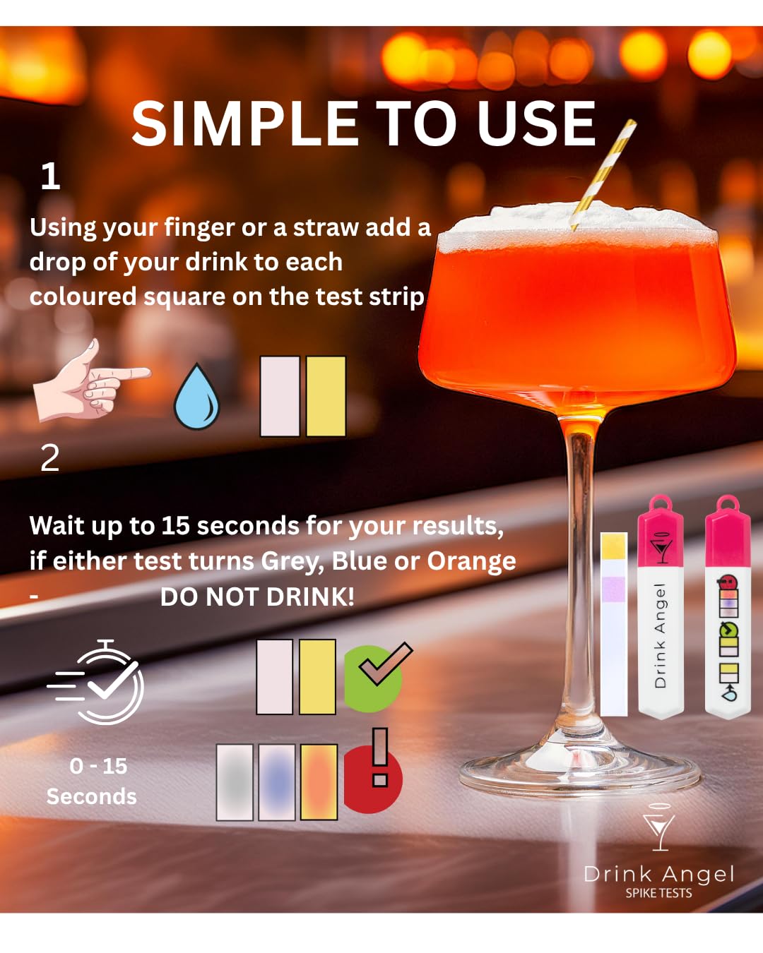 EASY ON THE GO TESTING: Quickly check your drink for tampering using fast reacting test squares. Ideal for bars, nightclubs, house parties, concerts, Christmas events and student nights, keeping you aware and confident.