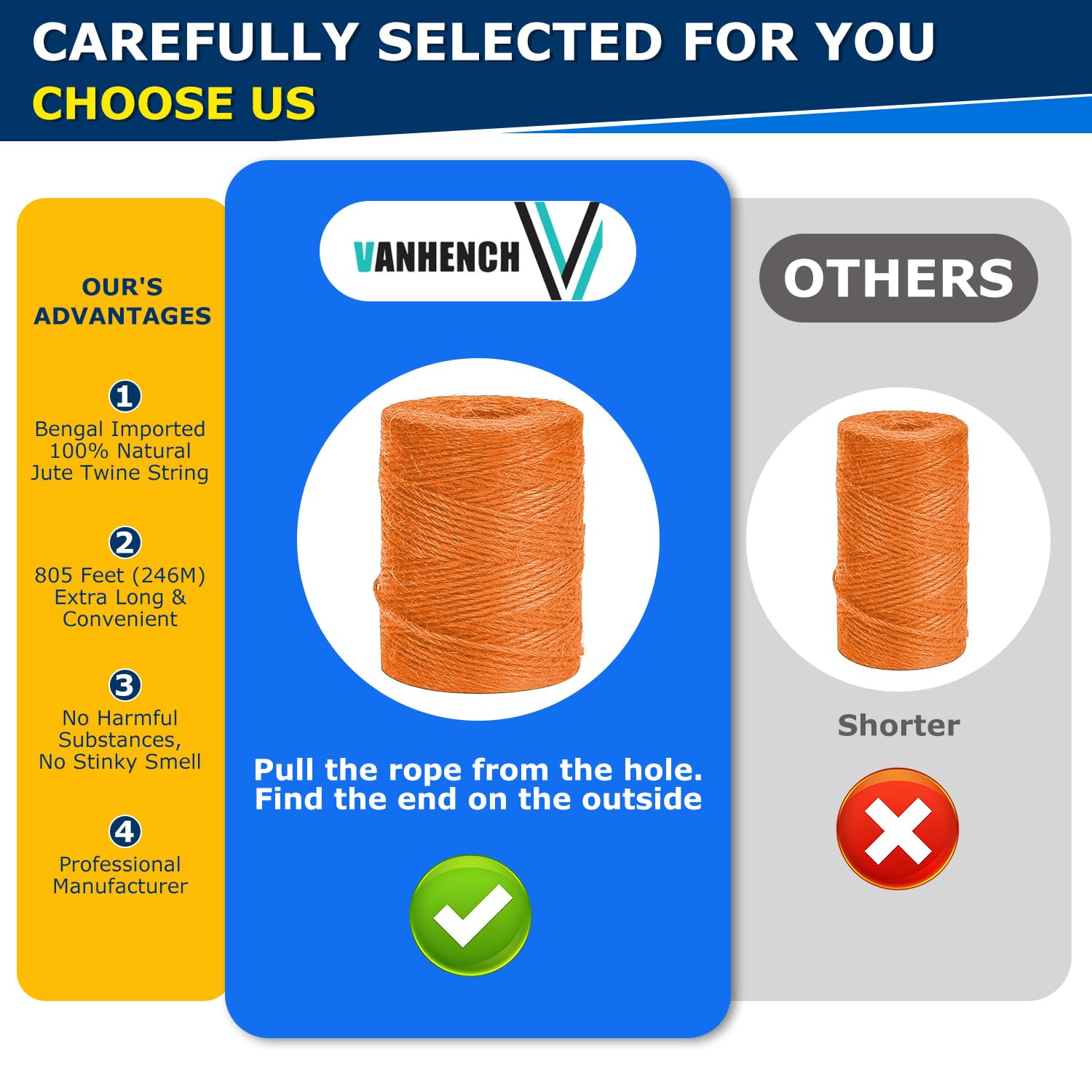 Vanhench Jute Twine 2mmX805ft (246m), jute Rope for Crafts Gardening Garden Plant Gift Wrapping Arts & Crafts Art Decoration Packing Material Christmas Twine Bulk Heavy-Duty (Orange)