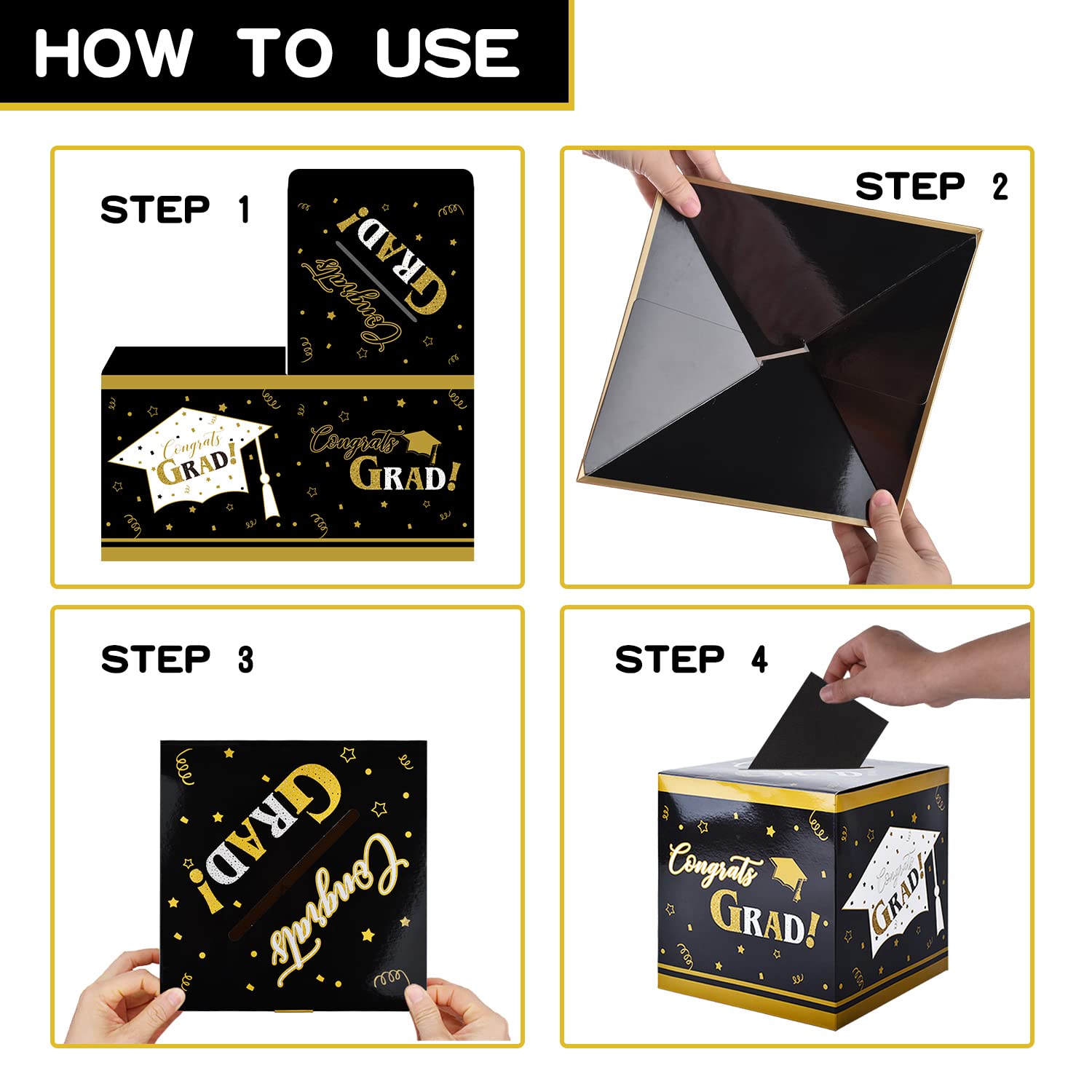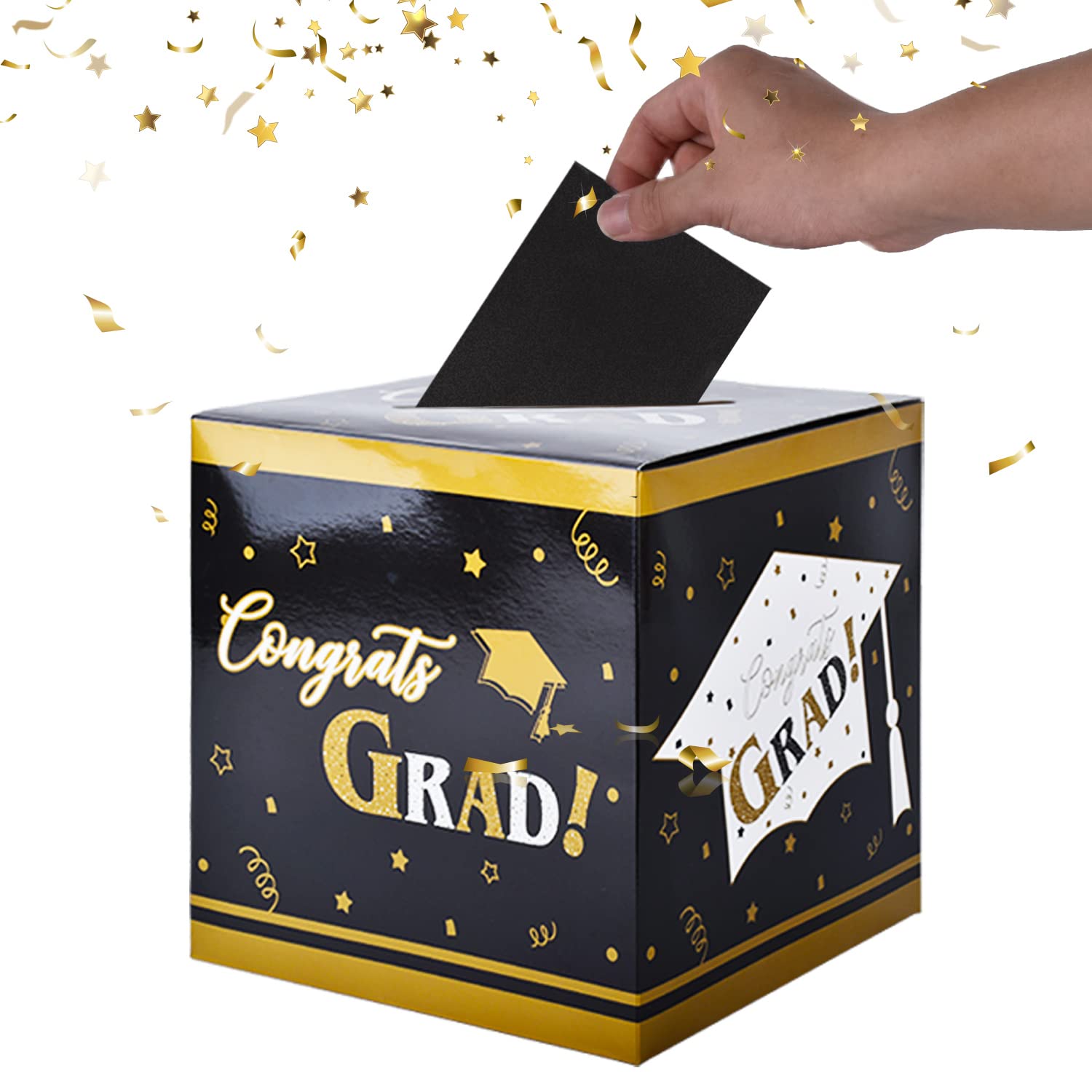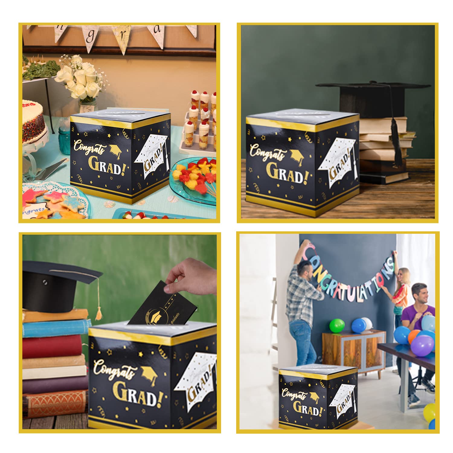 GRADUATION BOX DECORATIONS: decorate your party more unique and beautiful by using the box. It’s easily to fold and prepare for the best party by our party supplies. A little simple decoration can make your party to attract the attention of all guests.