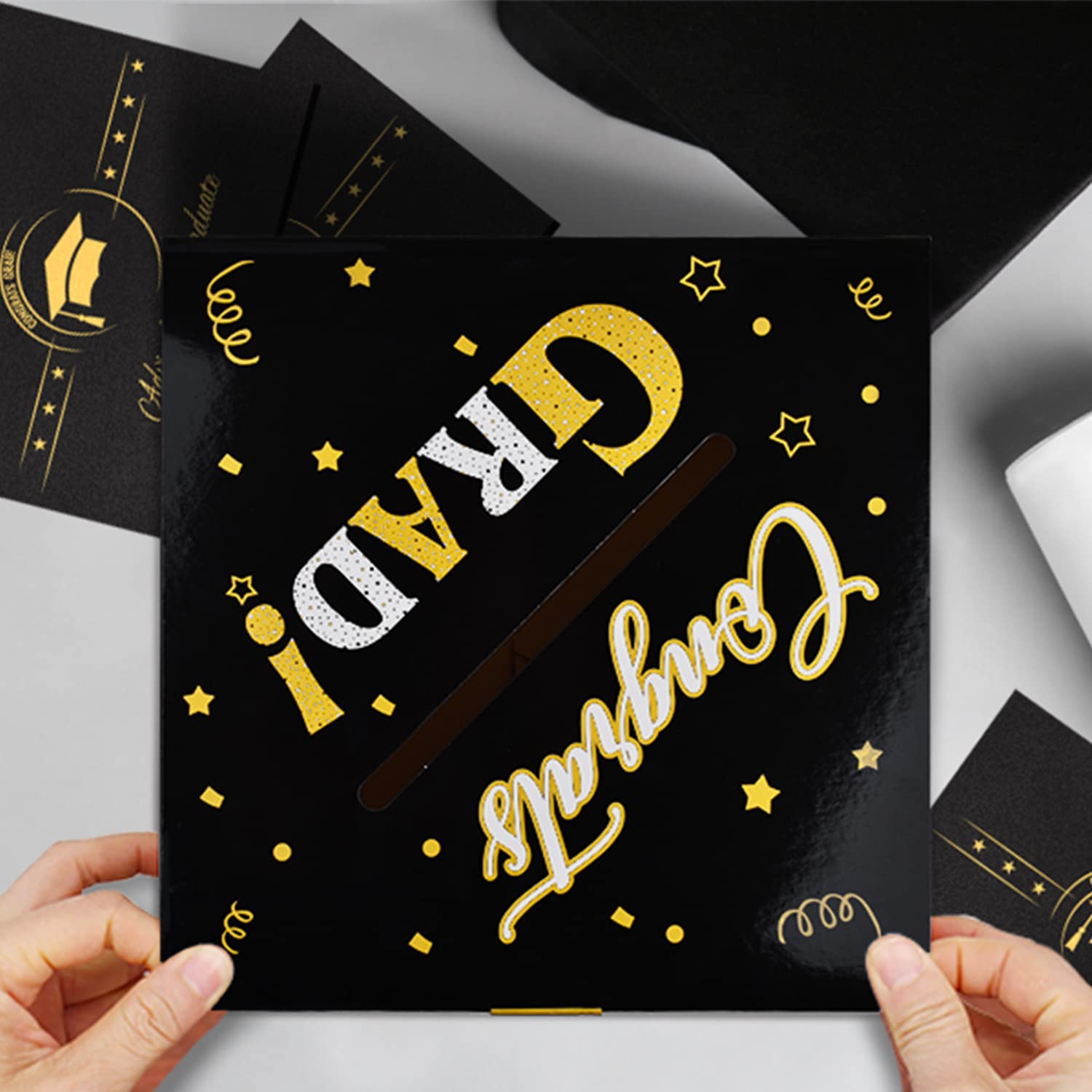 CLASSIC COLORS COMBINATION & GOLD STAMPING DESIGN: the graduation box is composed by classic colors including white, black and gold. We choose gold stamping material to make the design more attractive and exquisite. You can easily create elegant graduation party atmosphere.