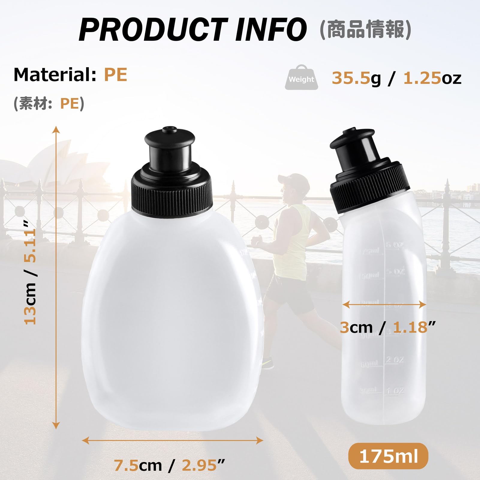 Lightweight & Compact: At just 35.5g (1.25 oz), this 175ml handheld bottle is easy to carry, fitting comfortably in your hand, backpack, or pocket
