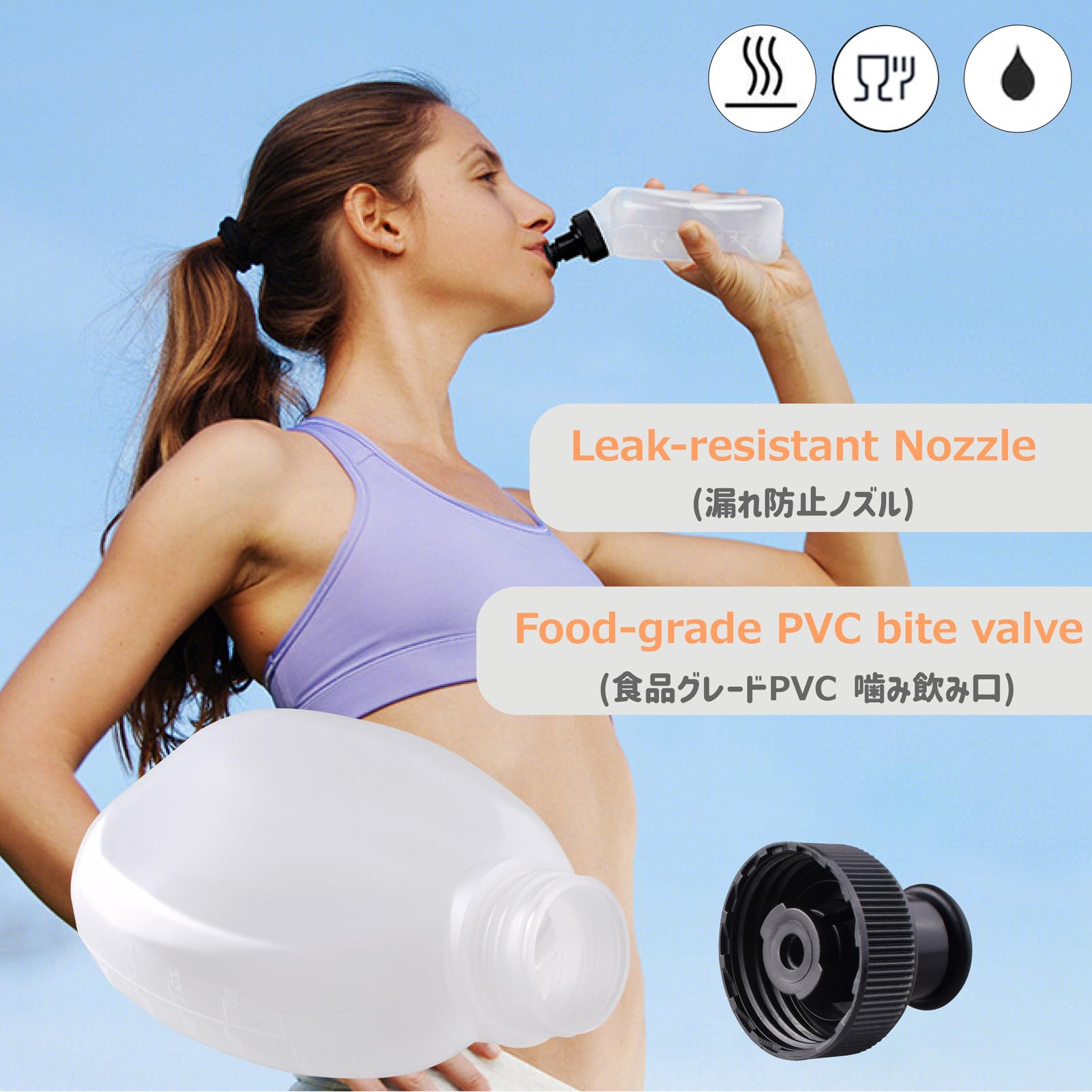 Leak-Proof Design: Features a secure push-pull cap and a food-grade PVC bite valve that ensures easy, spill-free hydration on the go while providing durable and reliable performance