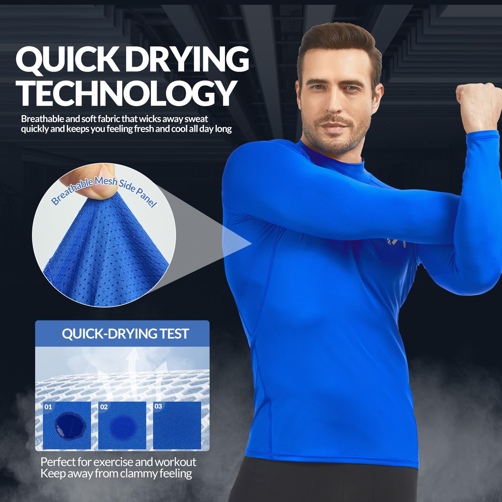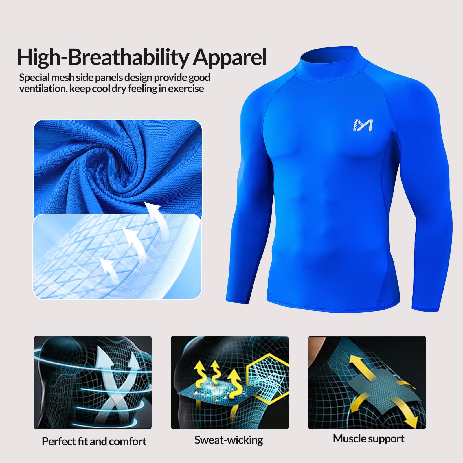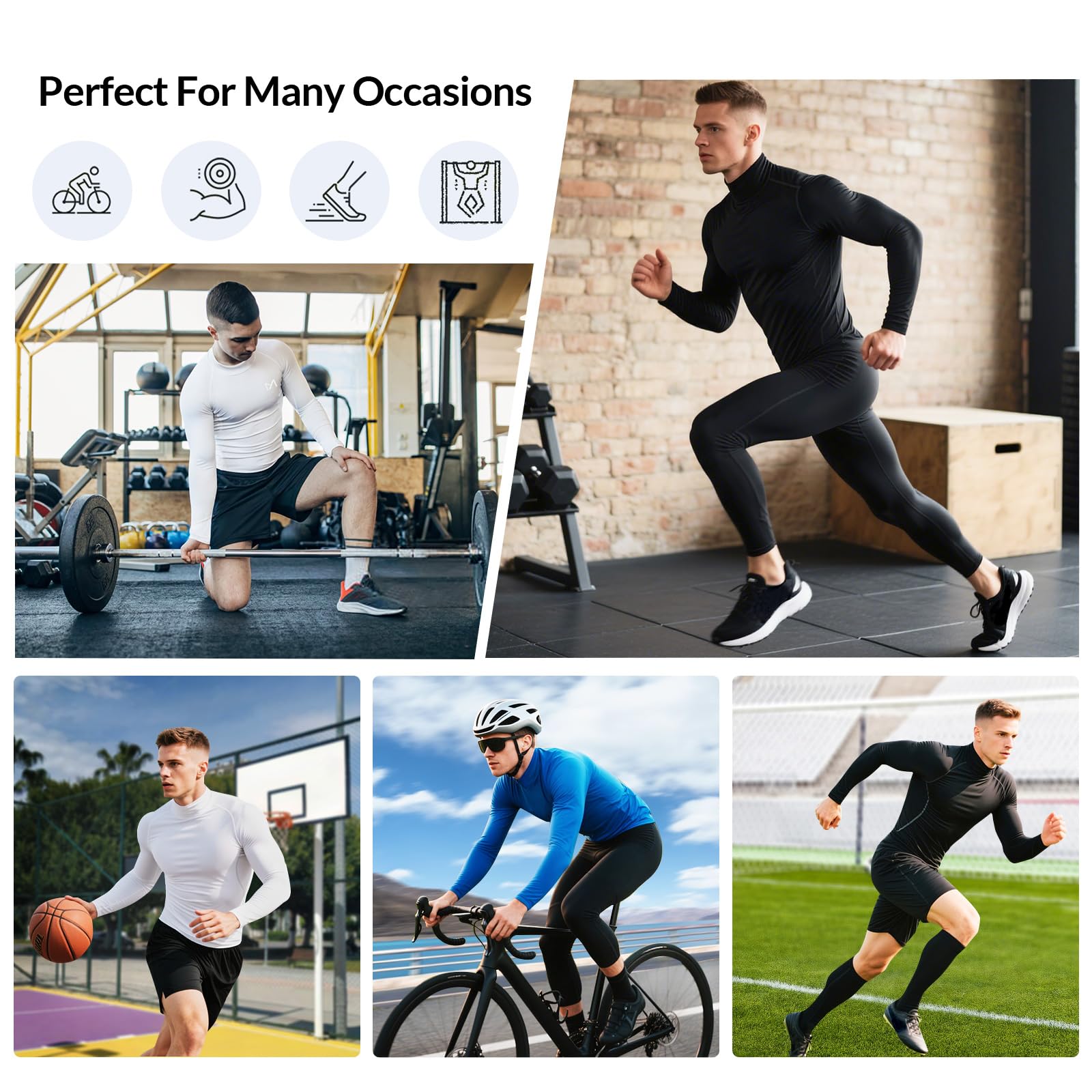 [Instantly Absorbing Sweat In Exercise] The men’s hight neck long sleeve is made of moisture wicking and breathable fabric, which will absorb sweat and dry quickly, keep away from clammy feeling and help regulate body temperature in exercise. The long sleeves underwear clothes will provide a enough comfort when you play outdoor sports and gym exercise