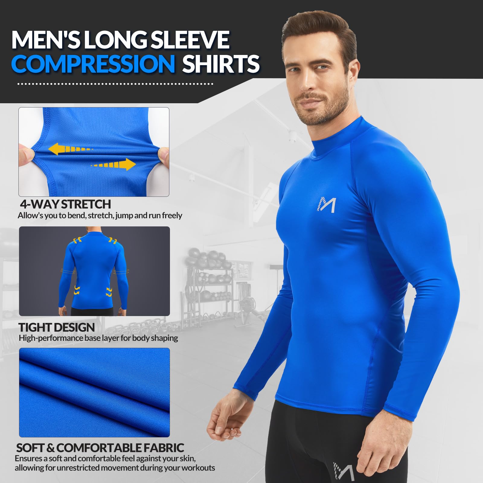 [Excellent Flexibility For Any Movement] The long gym top for men is designed with four way stretch fabric for your freedom of activities, really slim and light without bound feeling, allowing you to bend, stretch, jump and run freely. It's great for running, hiking, cycling, marathon, training, playing basketball, football , baseball, volleyball