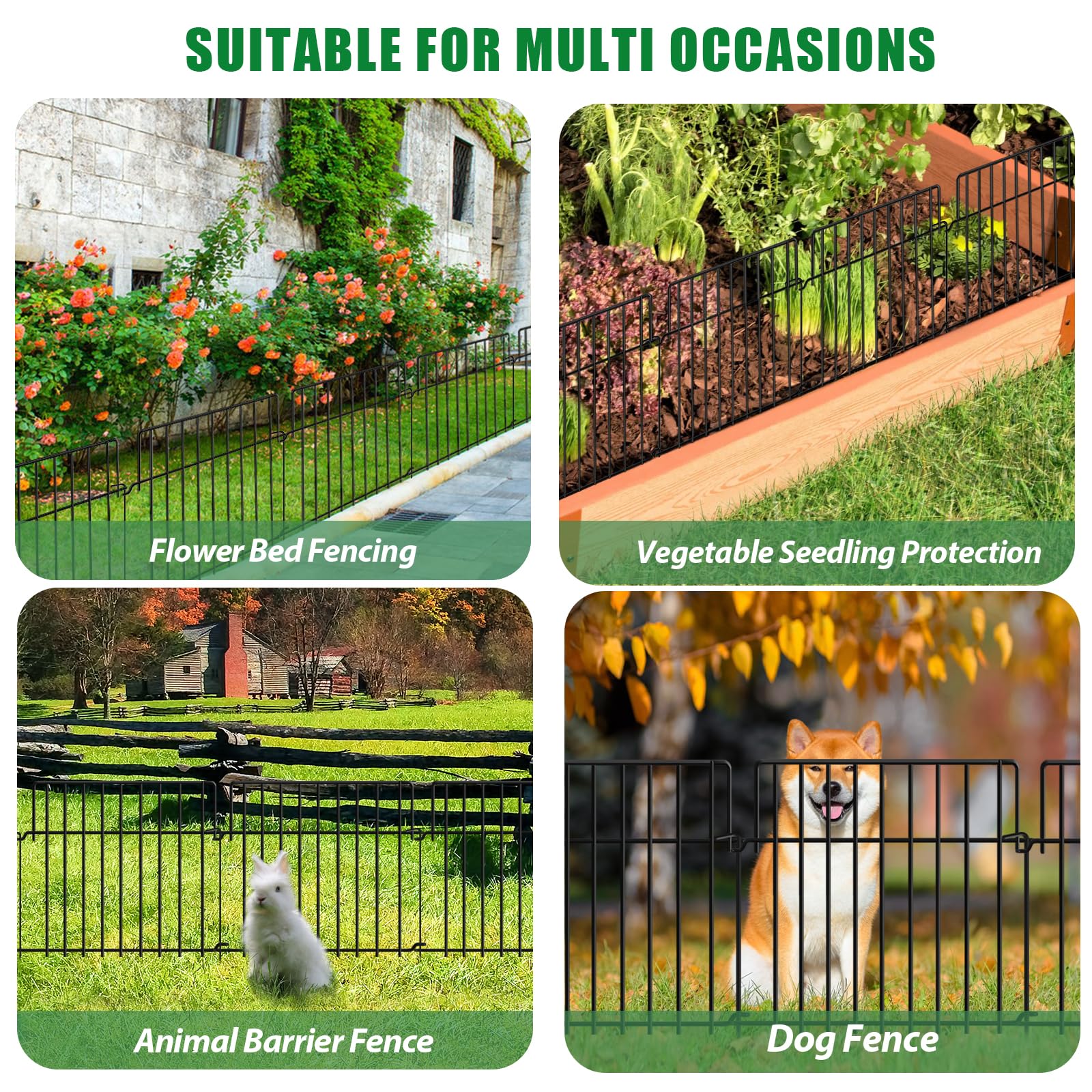 𝗦𝗜𝗭𝗘: Each decorative garden fence panel is 17 inches high, and 7-inch stake inserts into the soil for added stability, with a width of 13 inches, there are a total of 25 panels that can be connected to form a length of 32.5 feet. The garden fencing can also be expanded into different shapes according to your specific needs.