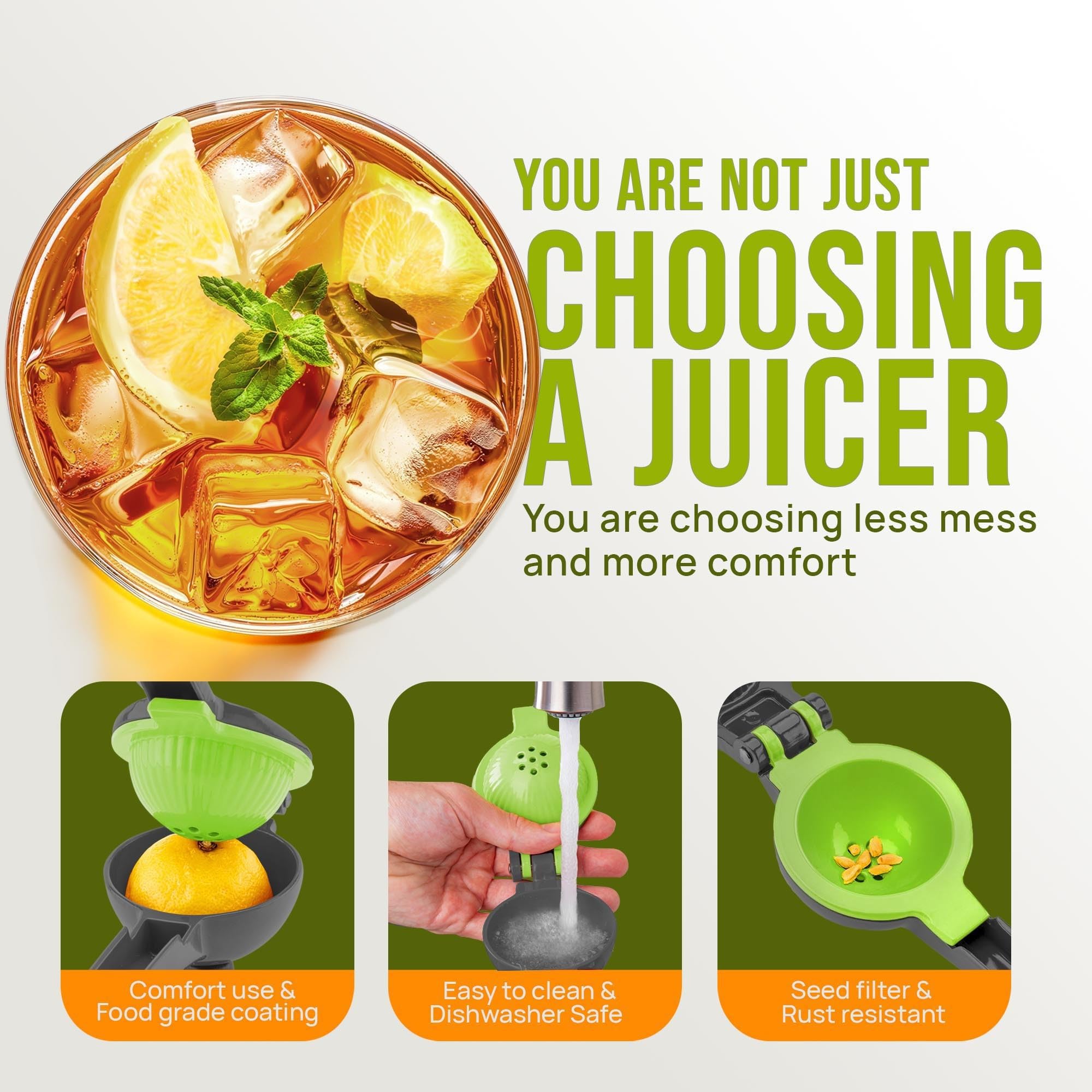 CLEANS IN SECONDS: After adding a tangy flavor to your recipe, simply toss the citrus juicer in the dishwasher for a quick clean up. Our juice press can also be effortlessly cleaned by running it under water.