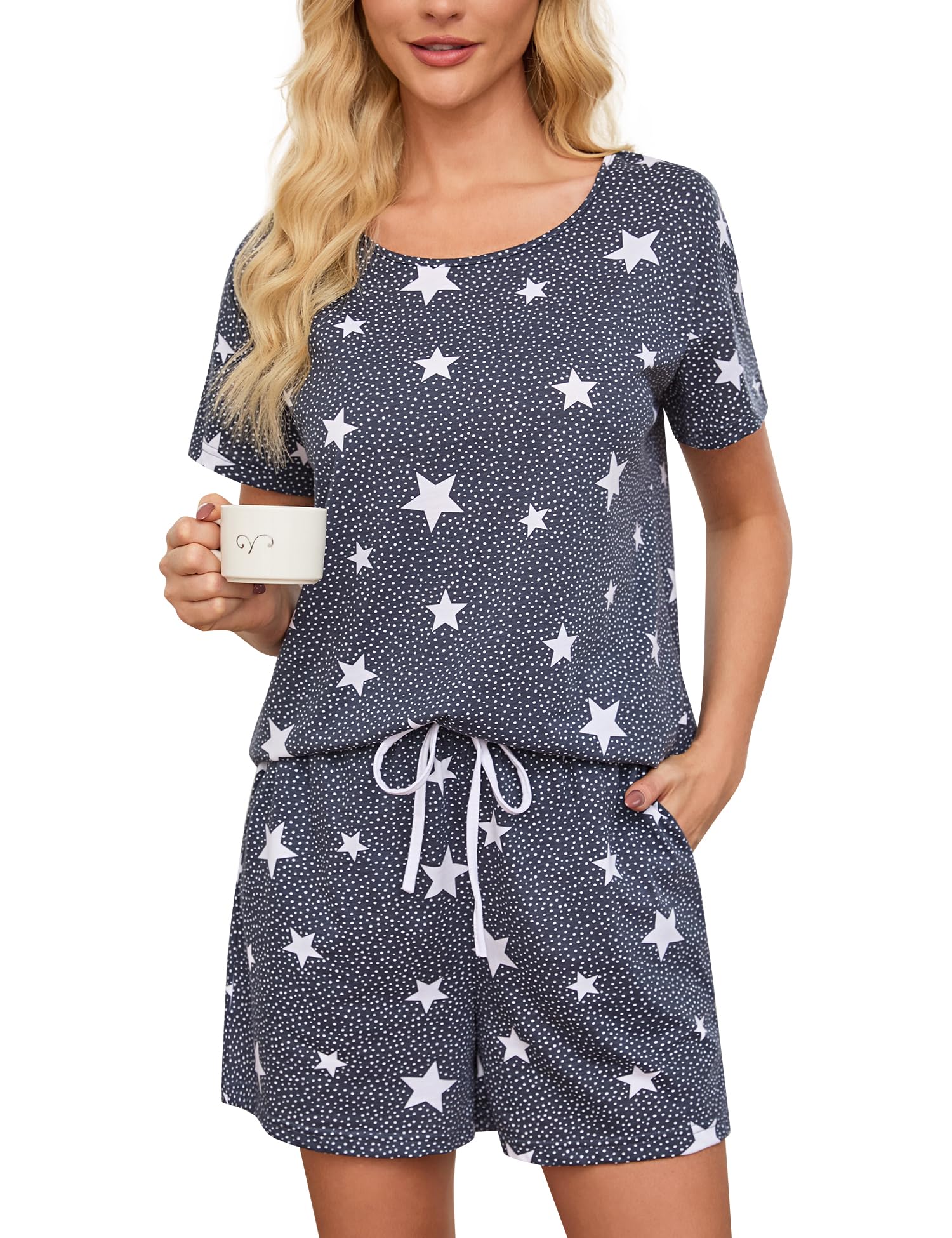 Comfy Material: Made of 60% cotton, 40% polyester, soft, non-irritating, superbly breathable, offers gentle give while maintaining its shape, summer pajama short sets bring you comfy skin touch feeling.