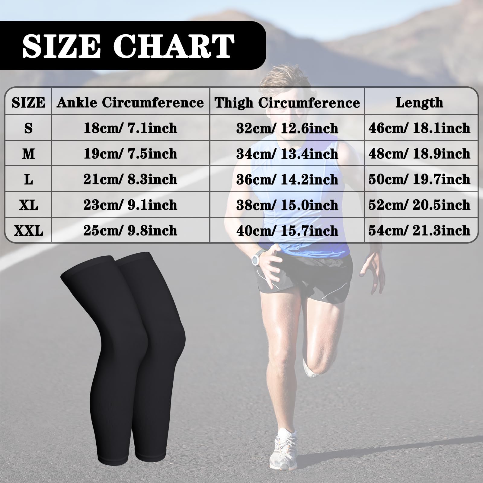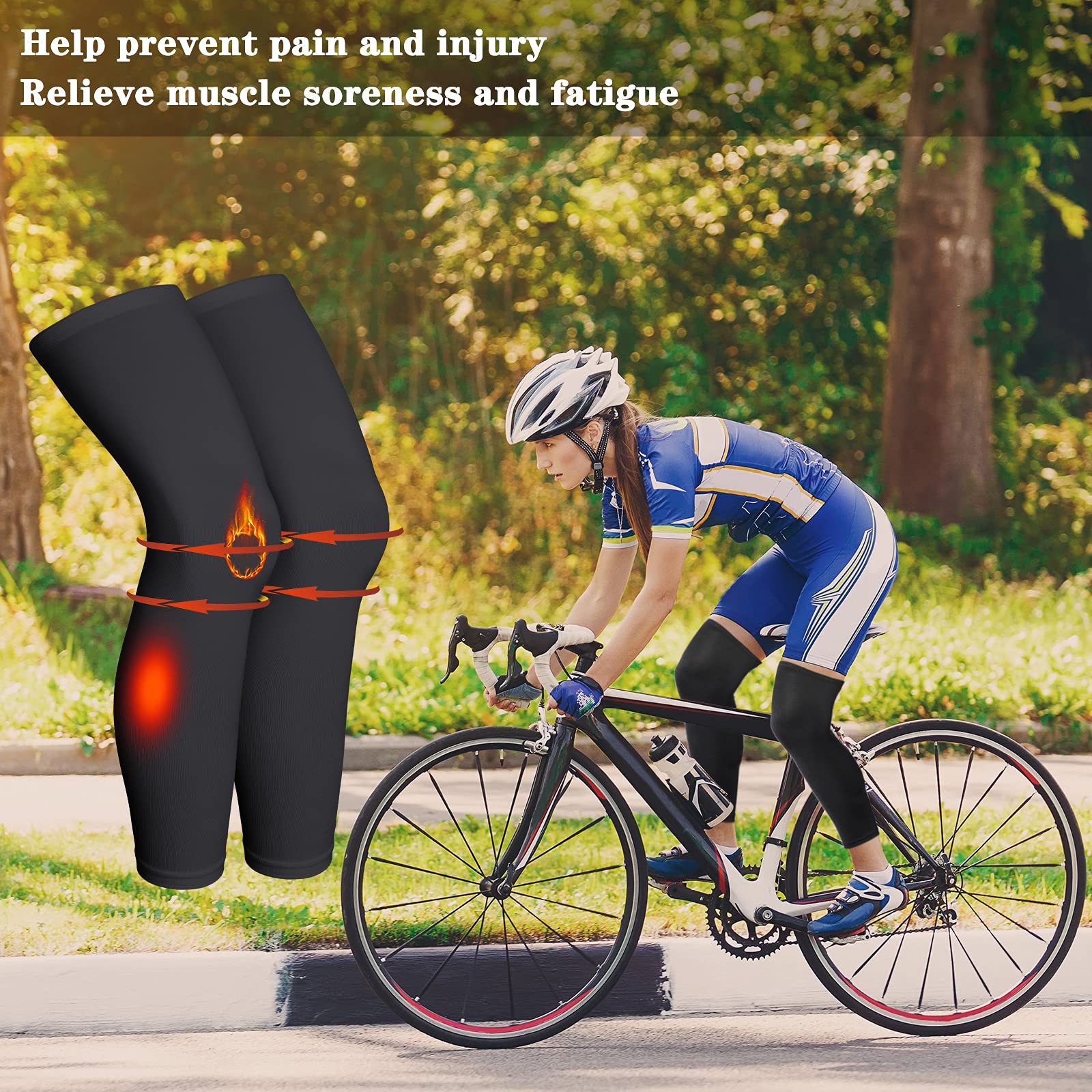 Practical 2 pair of outdoor sport sleeve: compression full leg sleeves are designed to help you get the support you need to be comfortable day and night, helping you prevent pain such as leg pain, tibial splints, leg pinching, muscle soreness, fatigue, swelling, varicose veins and spider veins, etc, Note: please check the size list carefully before buying; The leg sleeve material is elastic; If you want more compress, you can buy a smaller size
