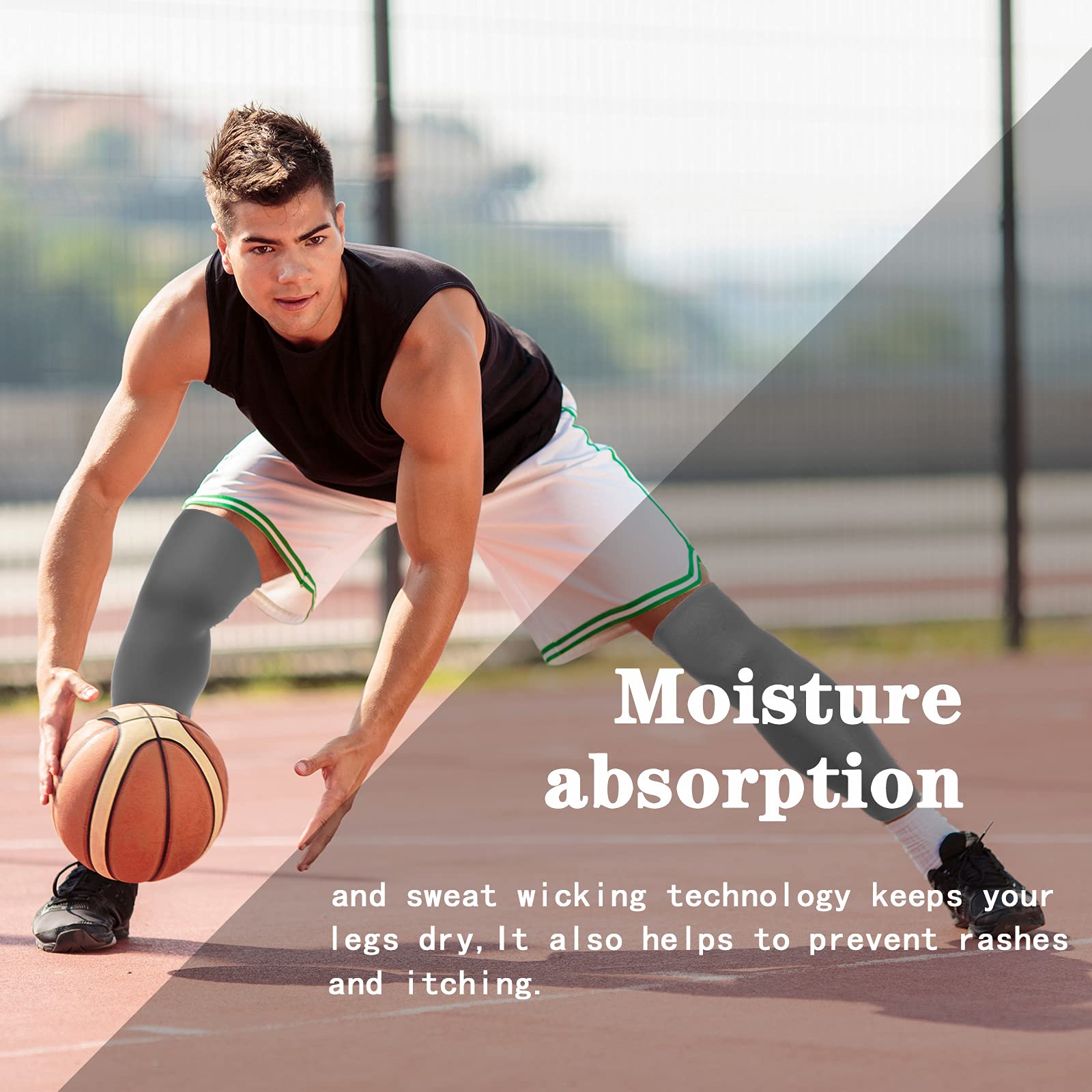 Effective function: the built in silicone can keep the position well, so you can wear for a long time without falling off; The compression design of nonslip leg sleeve can increase blood flow and circulation, helping speed up muscle recovery time, reducing leg shaking when exercising, and effectively relieving muscle pain after exercise