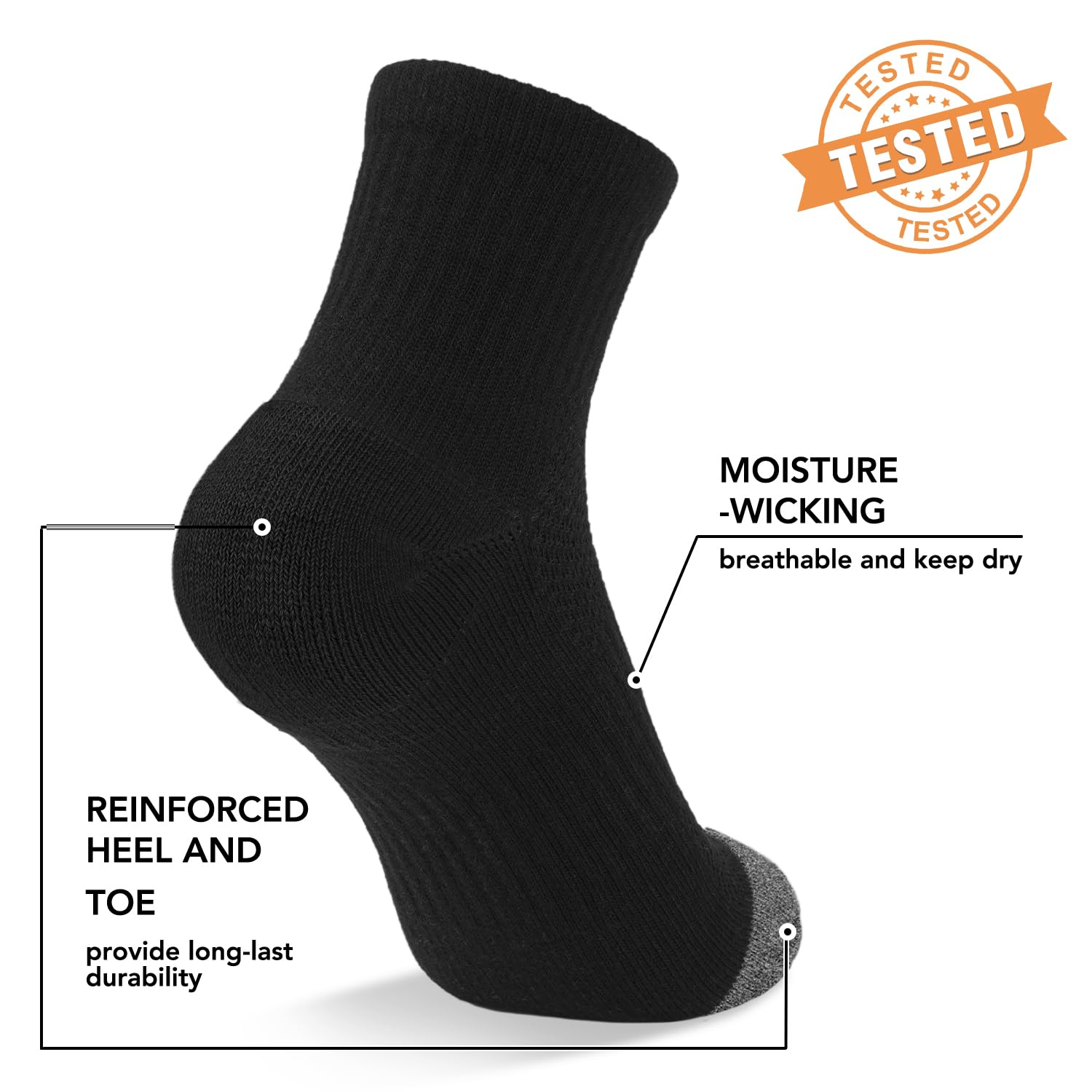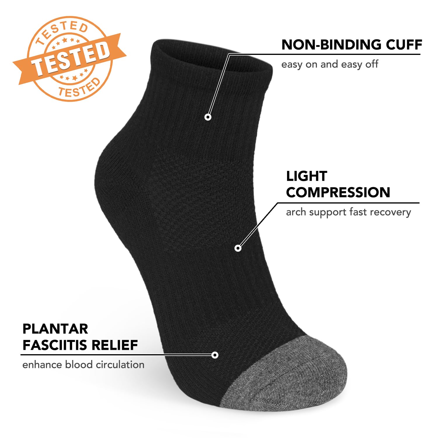 🆕CUSHIONED & MESH DESIGN -- Athletic ankle compression socks for women men can also be more comfortable to wear than traditional socks, as they provide a snug, supportive fit that can help prevent blisters and other foot injuries. The cushioned plantar fasciitis relief socks can also be made from breathable materials that help wick away moisture, keeping the feet cool and dry.