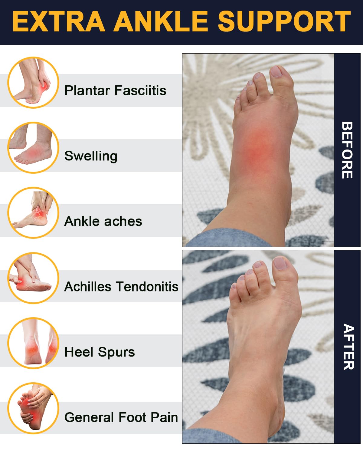 🆕MORE SIZES -- Small/Medium,Large/X-Large,XX-Large. Remember to size up for less compression and size down for more compression.Experience the ultimate comfort and protection with compression support socks. Finest product and service guaranteed! Your satisfaction and good health is our top priority.