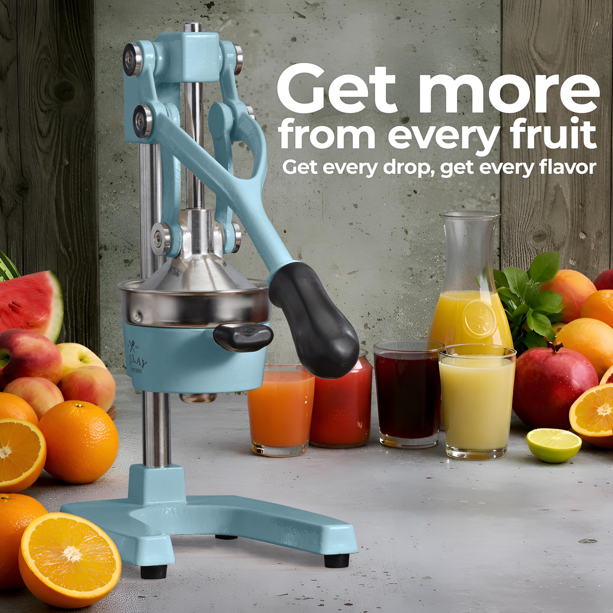 BUILT TO LAST A LIFETIME: Crafted from heavy-duty cast iron, this manual juicer is engineered to handle continuous, high-pressure use for years without wearing down. The smart leverage mechanism does the heavy lifting with a single pull, while the rubberized feet keep the press firmly planted on your counter — no slipping, no tipping, ever.