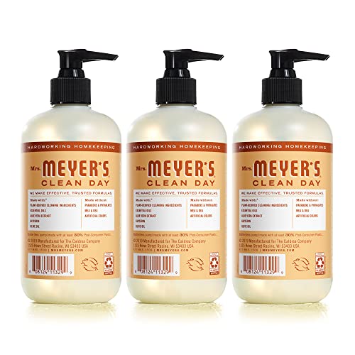Mrs. Meyer's Clean Day hand soaps are specifically made to clean and freshen hands without drying, while also providing a special, singular scent for your entire home. Oat Blossom scented hand soap has a creamy, clean, clarifying scent that is downright freshened up. That's something to toot your horn about! This hard-working hand soap formula contains olive oil, aloe vera, and essential oils, that clean and freshen hands. These thoughtfully chosen ingredients create a non-drying yet softening soap for busy hands. Made without parabens, phthalates, animal-derived ingredients, and always a cruelty free soap. Also available in other garden inspired scents and products such as body lotions, laundry detergents, candles, and so much more! Mrs. Meyer's - rooted in goodness.
