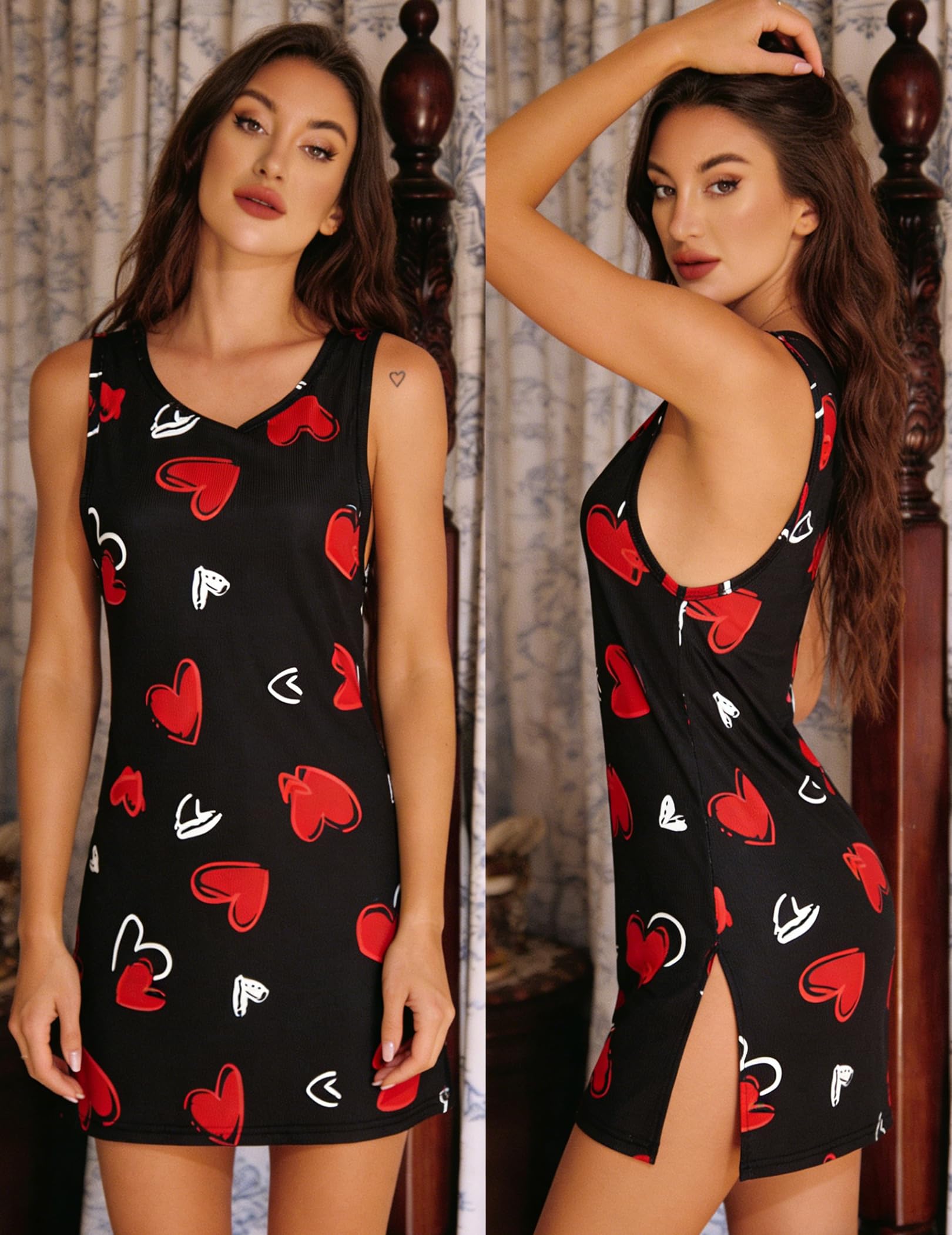【Design Style】: This sexy tank nightgowns has non-slip, elastic straps. Comfortable and easy to wear, it can perfectly decorate the shoulders. Slim-fit chemise with hips, plus side split hem, make your figure more sexy and elegant.