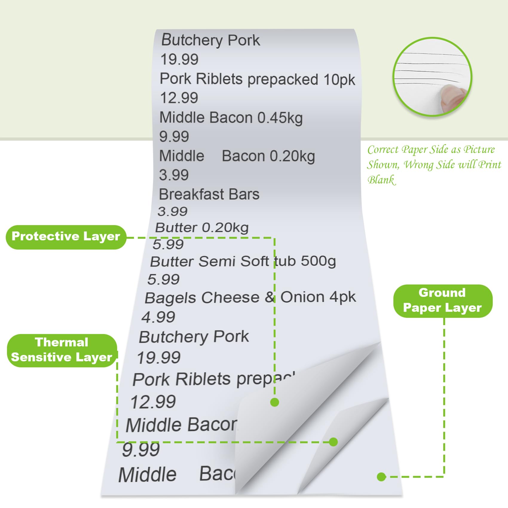 ✨ Premium Quality for Crisp, Long-Lasting Receipts:Impress customers with professional, clear receipts every time. Our premium white thermal paper features a high-sensitivity coating that produces dark, sharp text and barcodes—ensuring transactions are legible and scannable for returns or records, without fading or smudging.