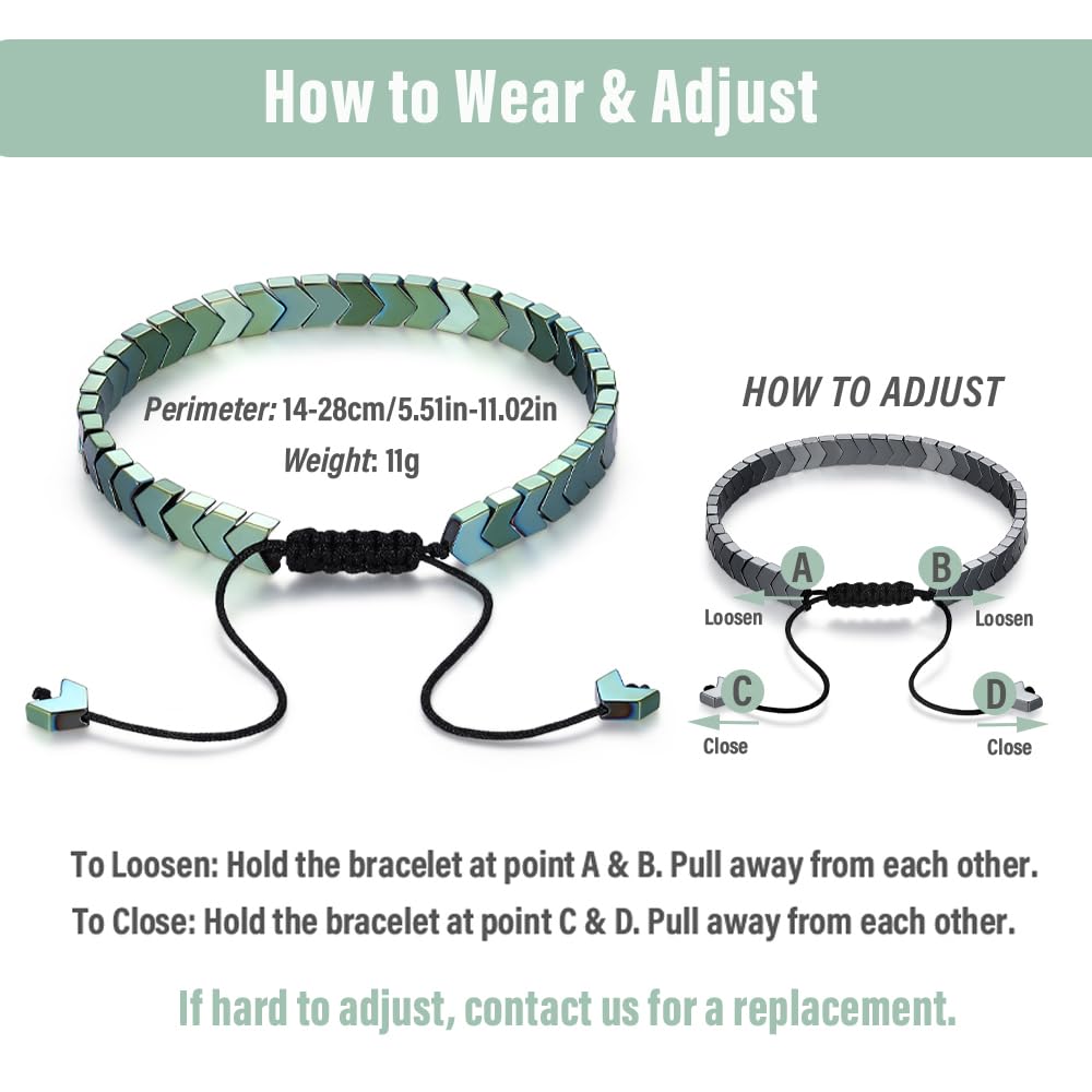 【Adjustable & Fits Most Teens/Adults】The Hematite arrows bracelet for teens can be adjusted into 8.3”-11.3”, it fits well, nice and tight for most wrist sizes for teens or adults. Simply pull the rope to customize the fit - easy to wear and remove while maintaining a secure, stylish look. (Find instructions on the picture and video, or contact us for help)