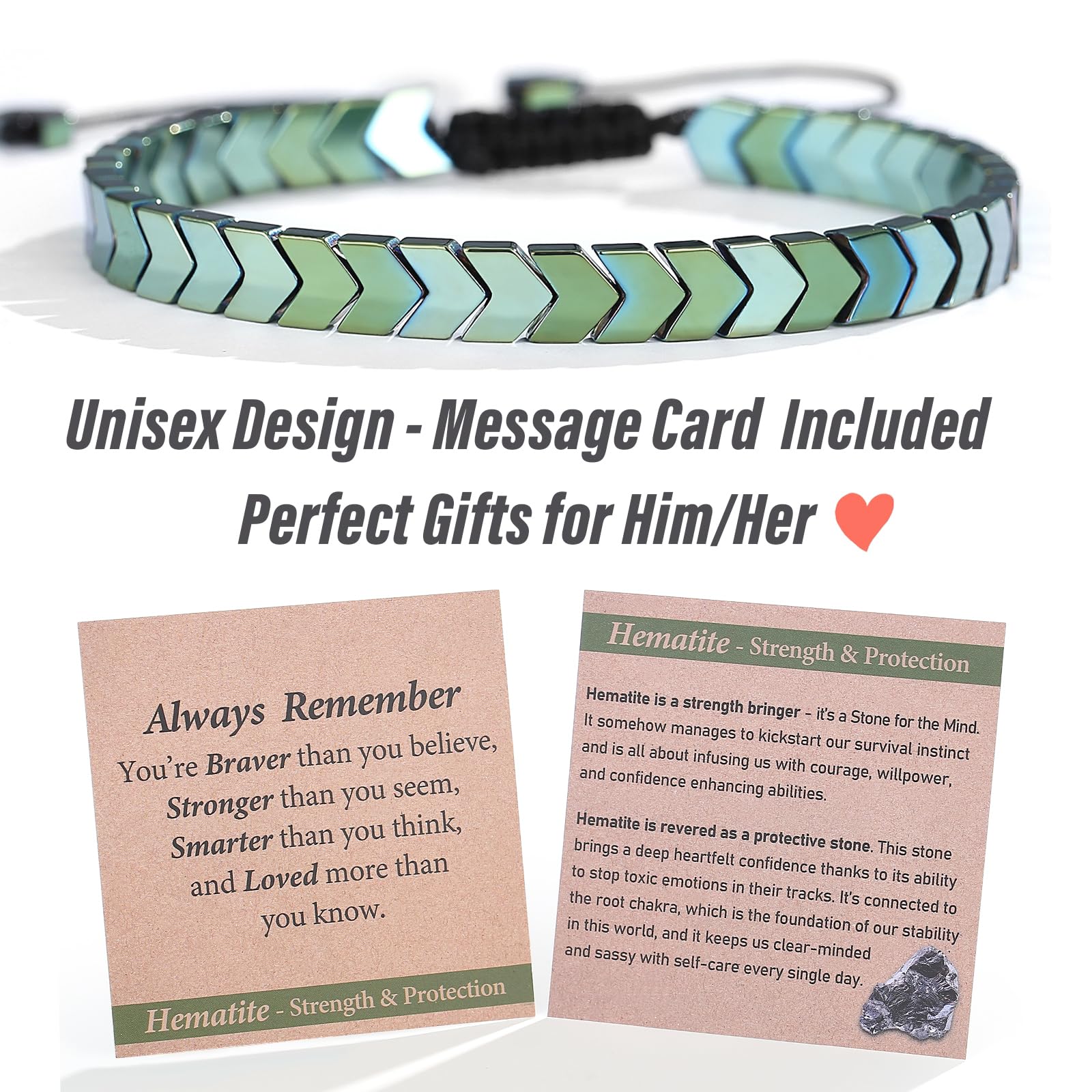 【Meaningful Card & Solid Craftsmanship】Coming with a meaning card which explains the benefits of the stone and message 'Always remember you are braver than you believe....', it makes your gift meaningful and unique. Solid Craftsmanship make sure it's comfortable for daily-wear and will not easily fall off/come apart. Hematite is known to absorb negative energy, which may cause it to break as it protects the wearer. If happened, please contact us for a replacement to keep ongoing protection.