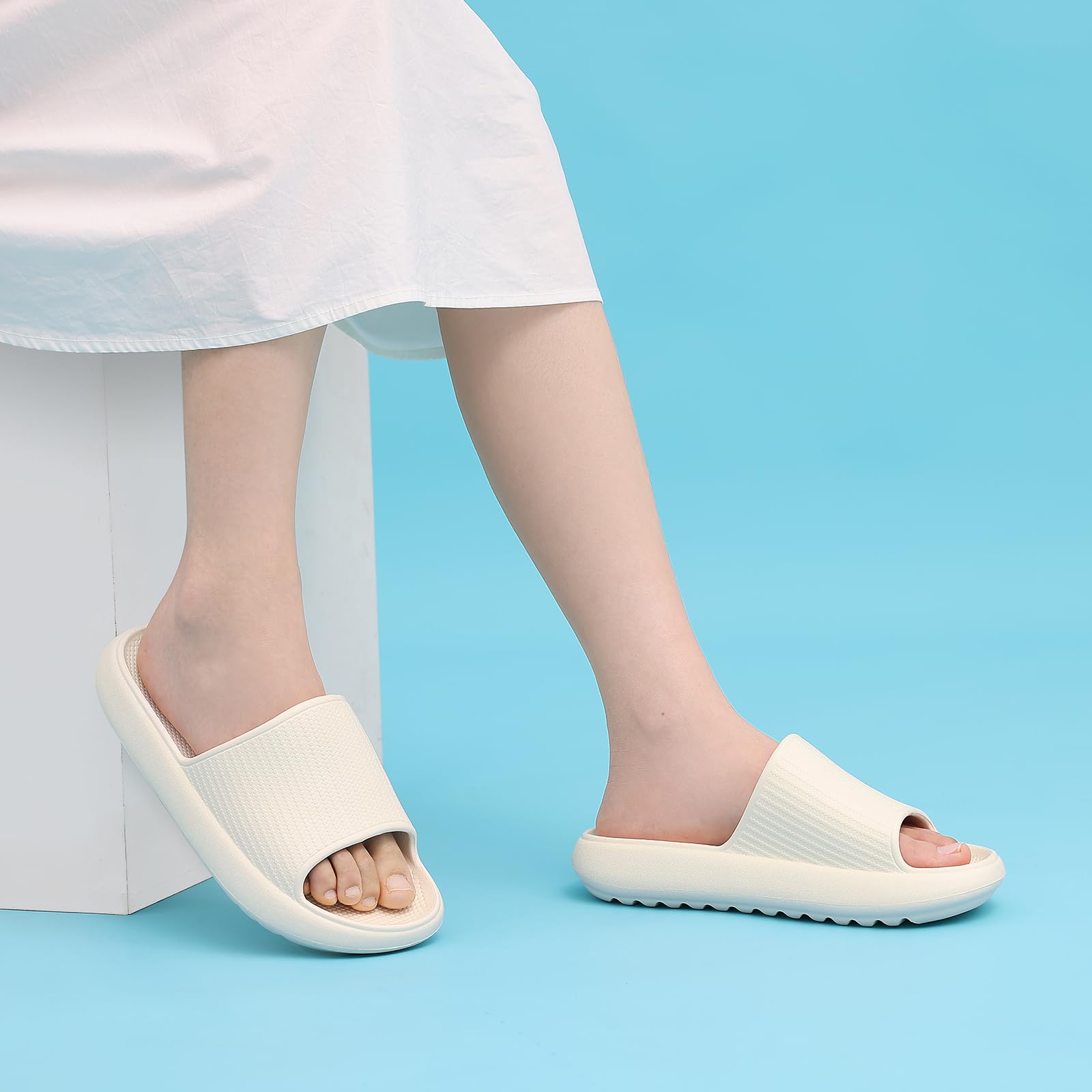 Description Cloud slides feature a concise style and a solid design, suitable for all seasons and occasions such as the bathroom, indoor bedroom, living room, swimming pool, outdoor beach, holidays, spas, leisure activities, public showers, steam rooms, etc. This makes our sandals for women 2025 the ideal choice for various settings.The supportive nature of the EVA material can offer compression resistance. The deep heel cup, along with the cushioned and rebound thick sole, can provide ultra cushioning. When you take a bath, our shower slippers can also protect you from falling due to their strong non-slip ability. Moreover, the quick-drying and breathable properties can offer a more comfortable life experience.
