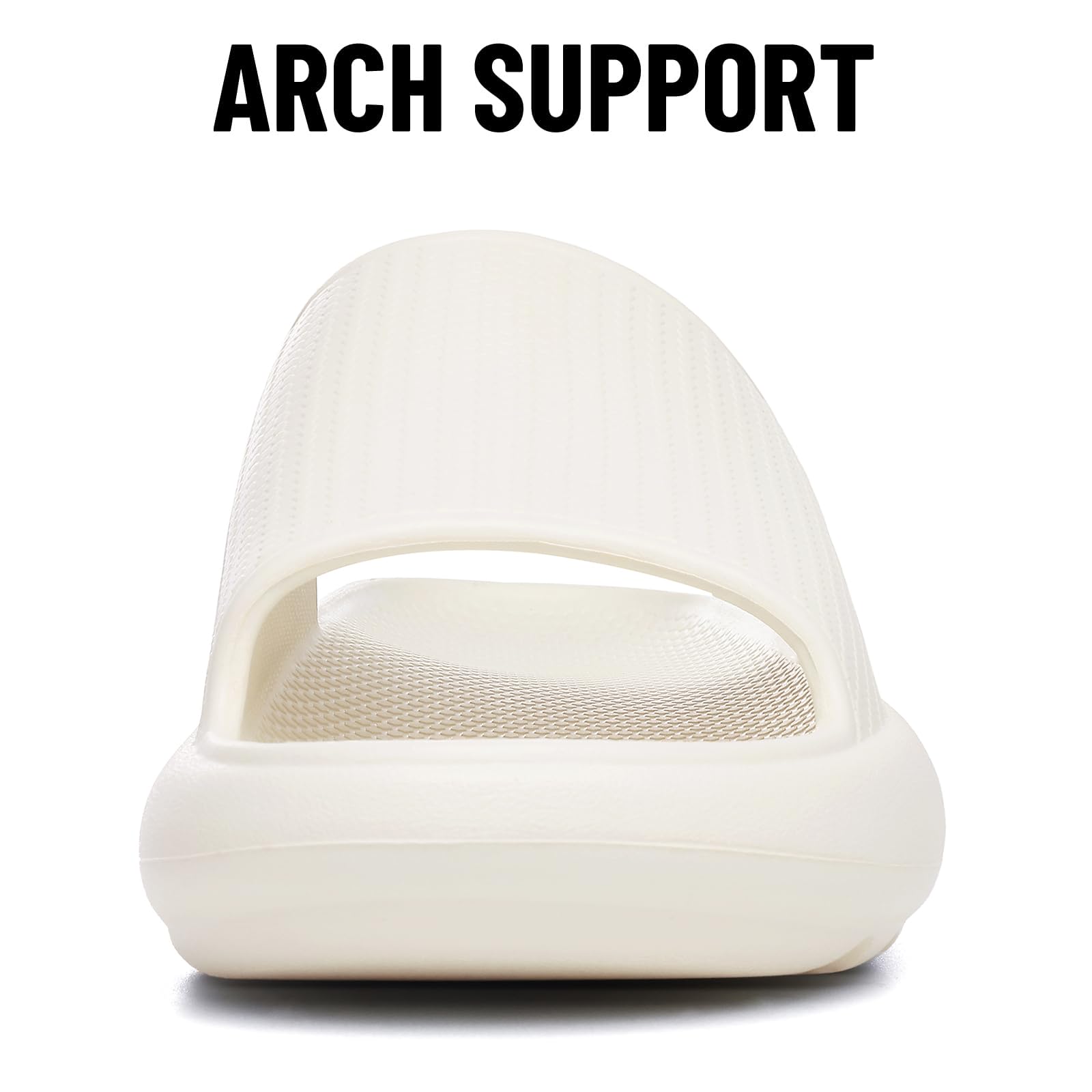 𝗥𝗲𝗰𝗼𝘃𝗲𝗿𝘆 𝗦𝗹𝗶𝗱𝗲 𝗦𝗮𝗻𝗱𝗮𝗹𝘀: 1.6" thick sole and slightly arch support provide supreme shock absorption and unbeatable cushioning, help relieve tired feet and foot pains like Plantar Fasciitis, Swollen Feet.