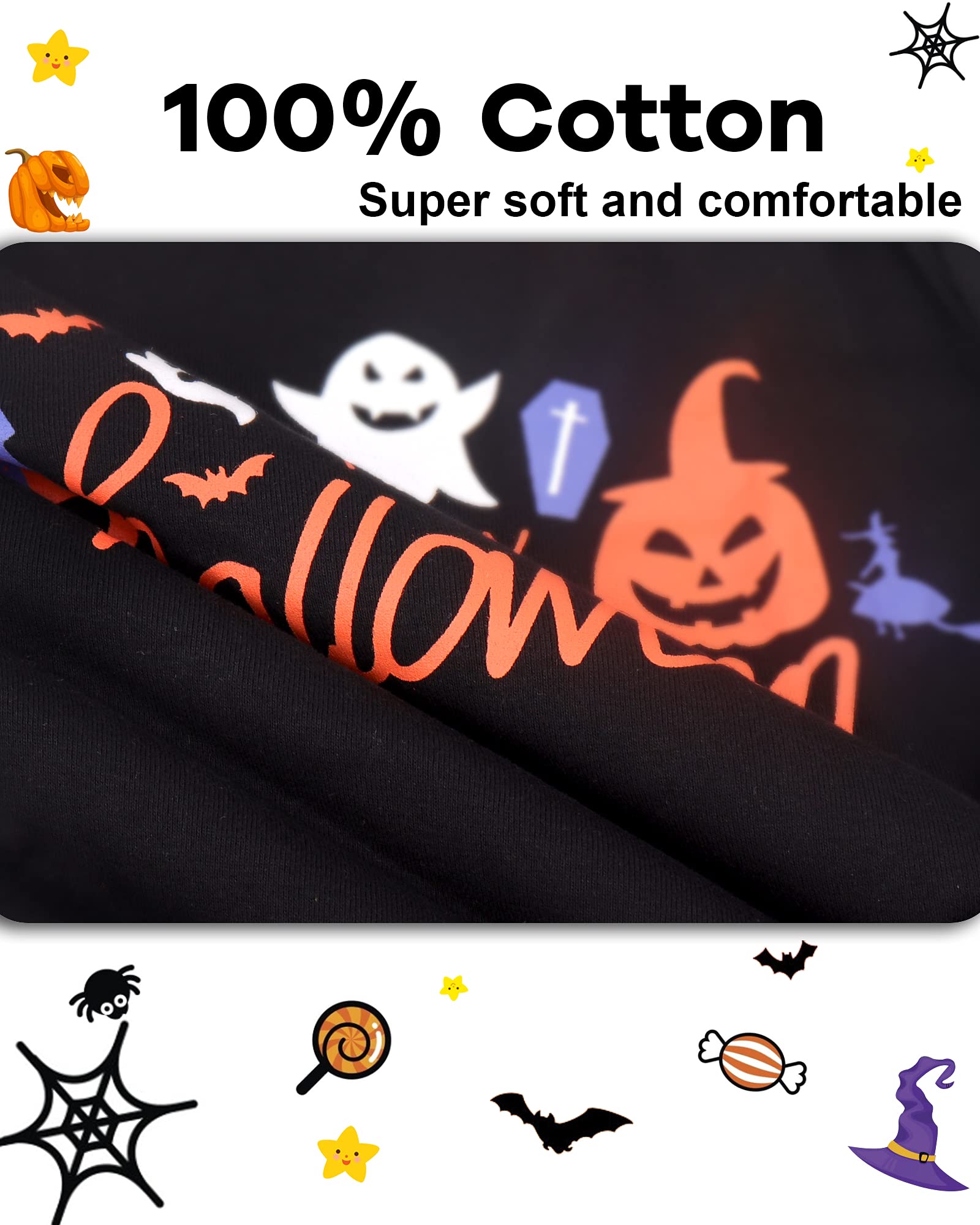 100% Cotton: The boy's halloween pajamas sets with 2pc are 100% cotton, which is very soft, lightweight, breathable but warm. The natural cotton long sleeve pjs for boys ensure a comfortable night's sleep, are also good for children's skin. We have been dedicating to providing kids with super comfy holiday pajamas
