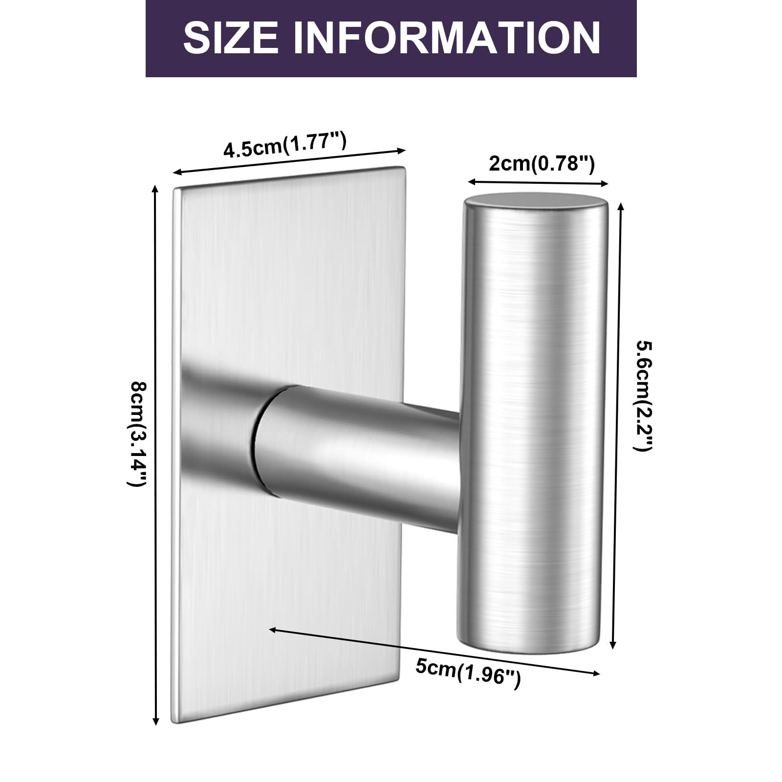 PREMIUM MATERIAL: Adhesive towel hooks are made of stainless steel, easy to clean, sturdy and durable, very practical home storage tool