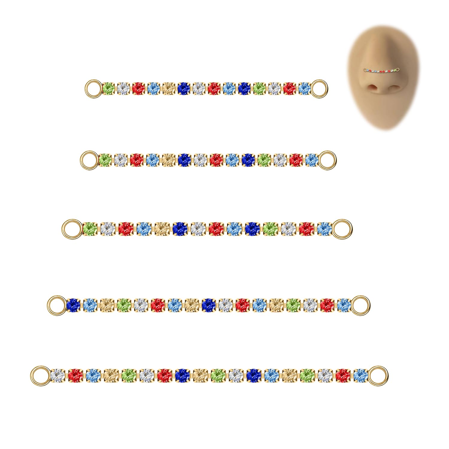 ★Packaging & Size: Five different sizes of nose ring chains, 32mm, 35mm, 40mm, 45mm, 50mm, meet your wearing needs for different parts. (This set does not include nose studs, nose rings, or earrings)