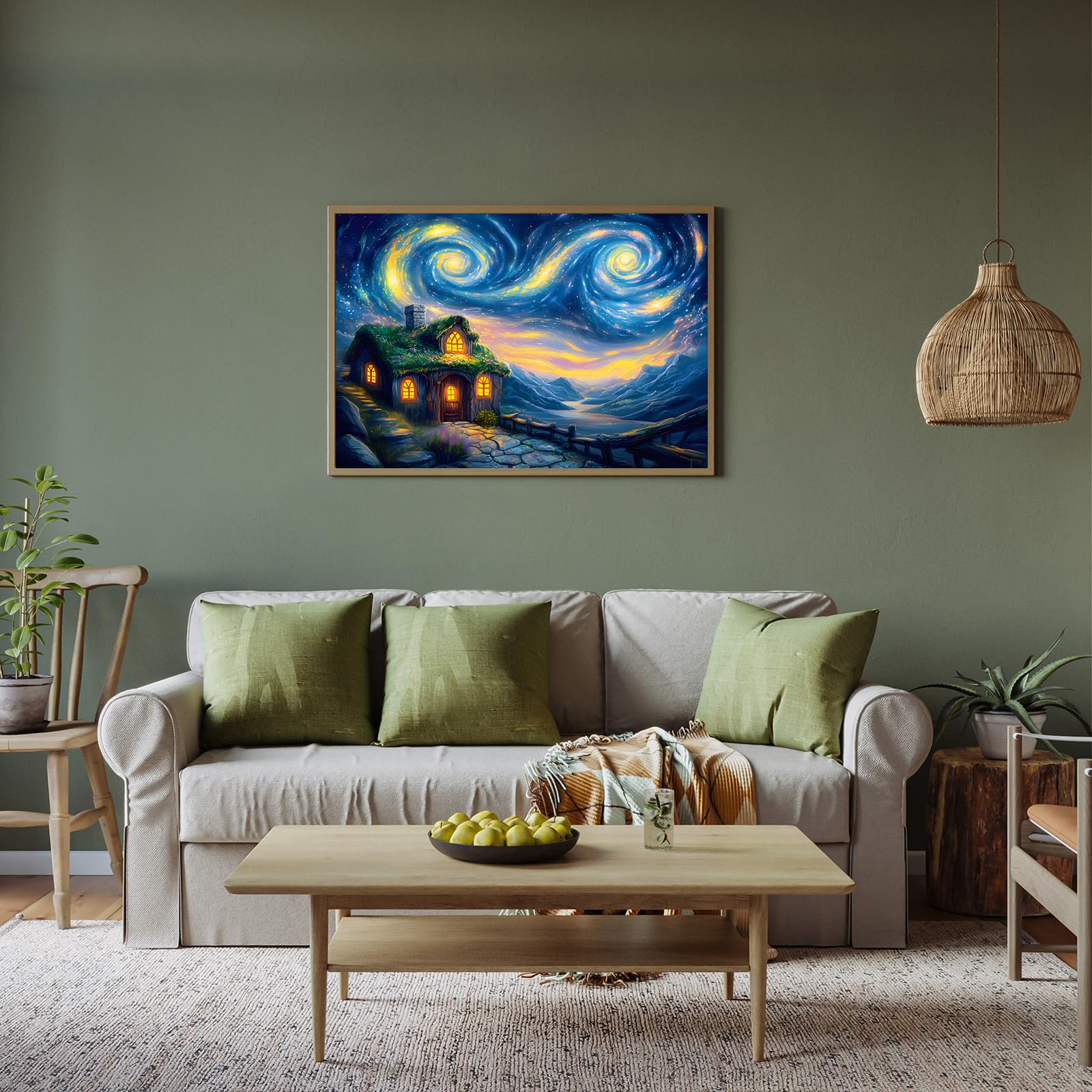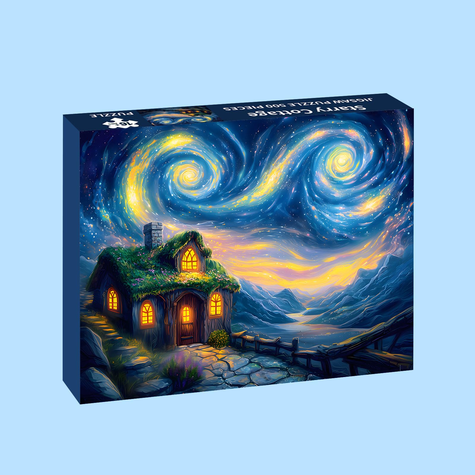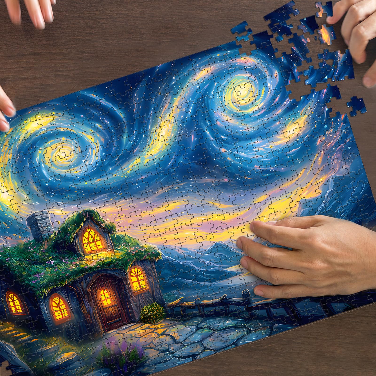 Puzzles for Adults 500 Pieces, Starry Night Jigsaw Puzzles 500 Pieces - Starry Cottage, Cottage Landscape Puzzles, Finished Size 20.47*14.96”, with 1:1 Poster, Letter on the Back