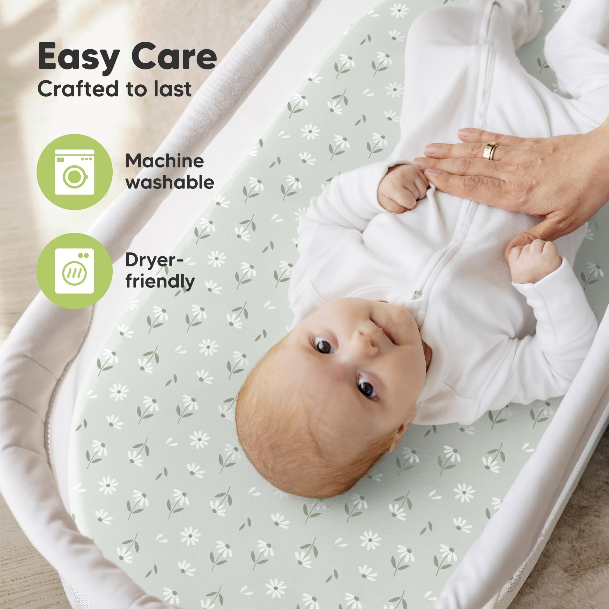 Durable & Long-lasting - Our Soothe Bassinet Sheets for boys and girls are made with quality finishes for durability. Machine washable and dryer friendly, these 2 pack organic bassinet sheets are baby bedding and nursery essential for modern parents.