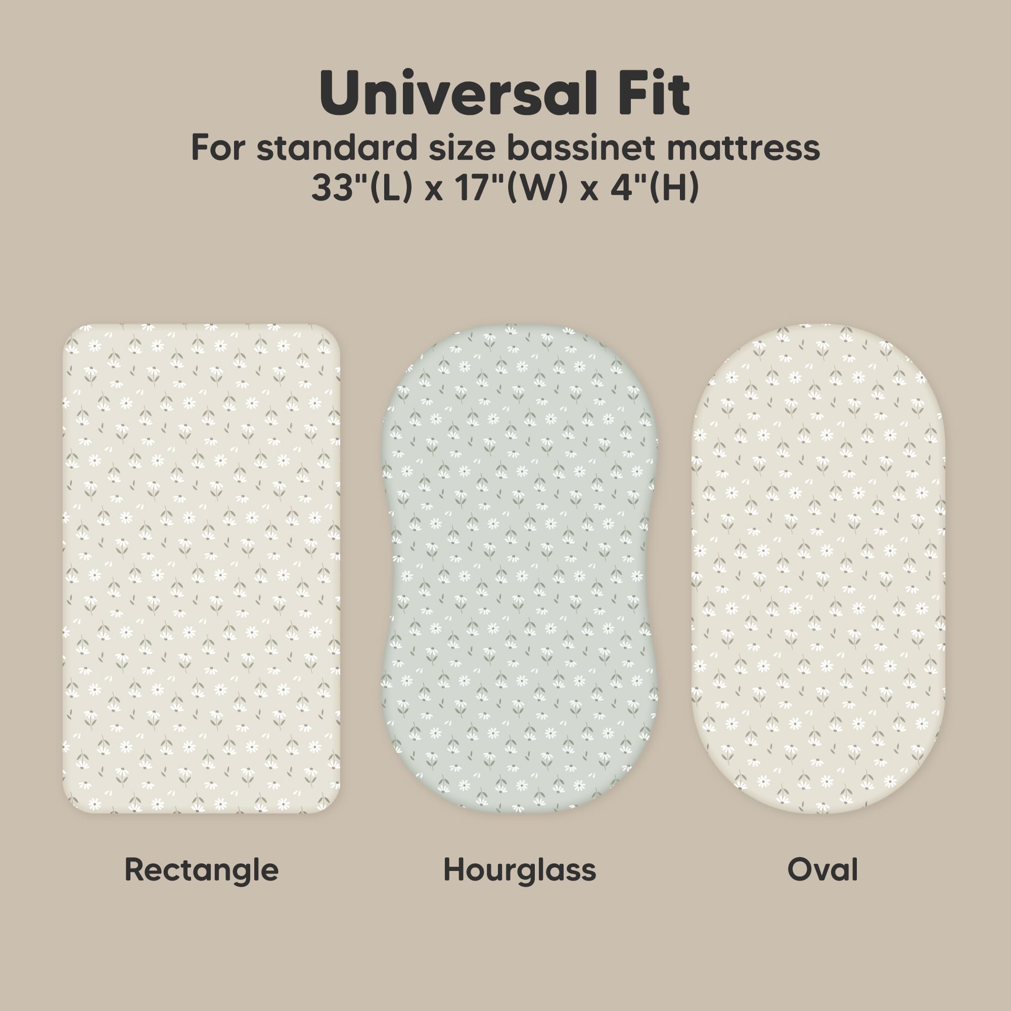 2-Pack Bassinet Sheets Organic Cotton – KeaBabies Soothe Bassinet Mattress Sheets, sized at 33" x 17" with a depth of up to 4", provide a universal fit for all bassinet mattress pad types. They can be used as oval and rectangle bassinet sheets.