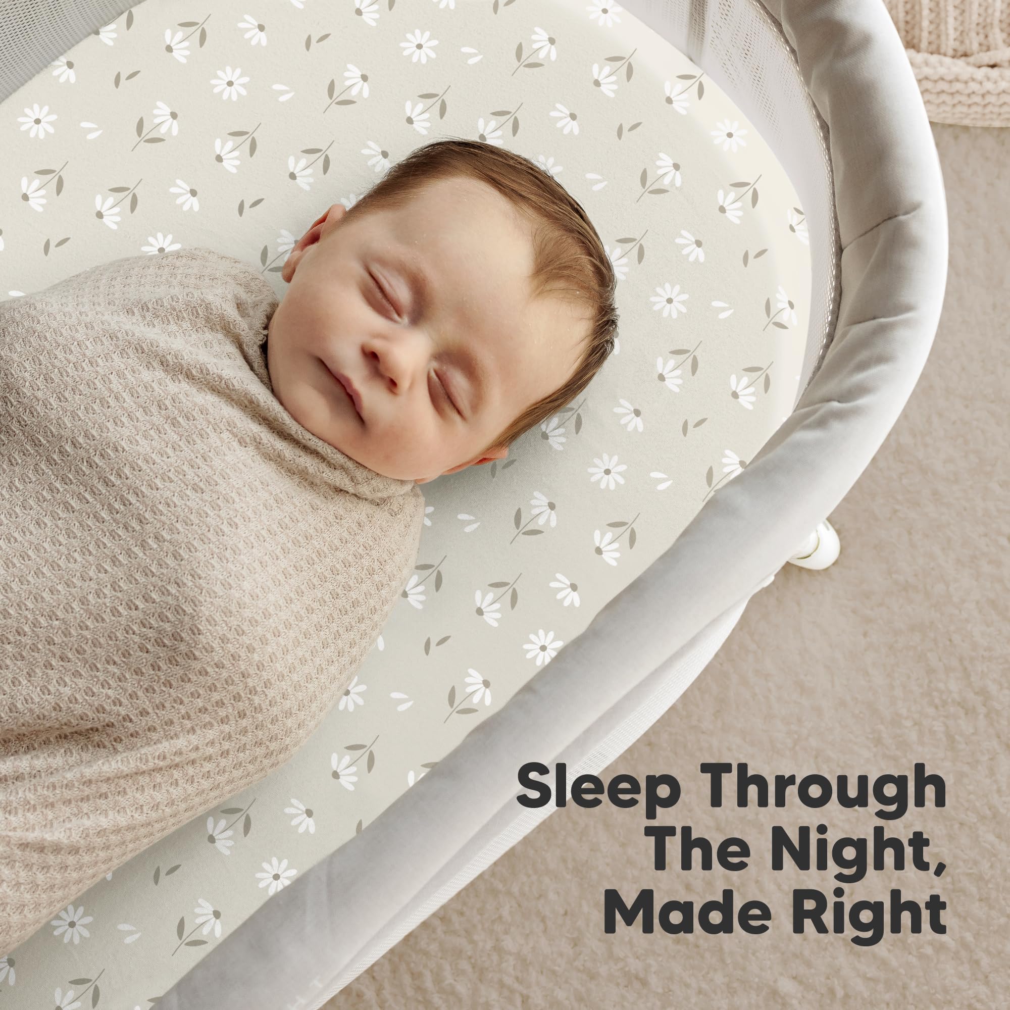 Easy To Put On – Soothe Fitted Bassinet Sheet uses SnugFit Tech, a smart fabric knit that allows the fabric to stretch when you are fitting or removing the bedside bassinet sheet from the bassinet mattress pad. No more struggling with rigid fabric!
