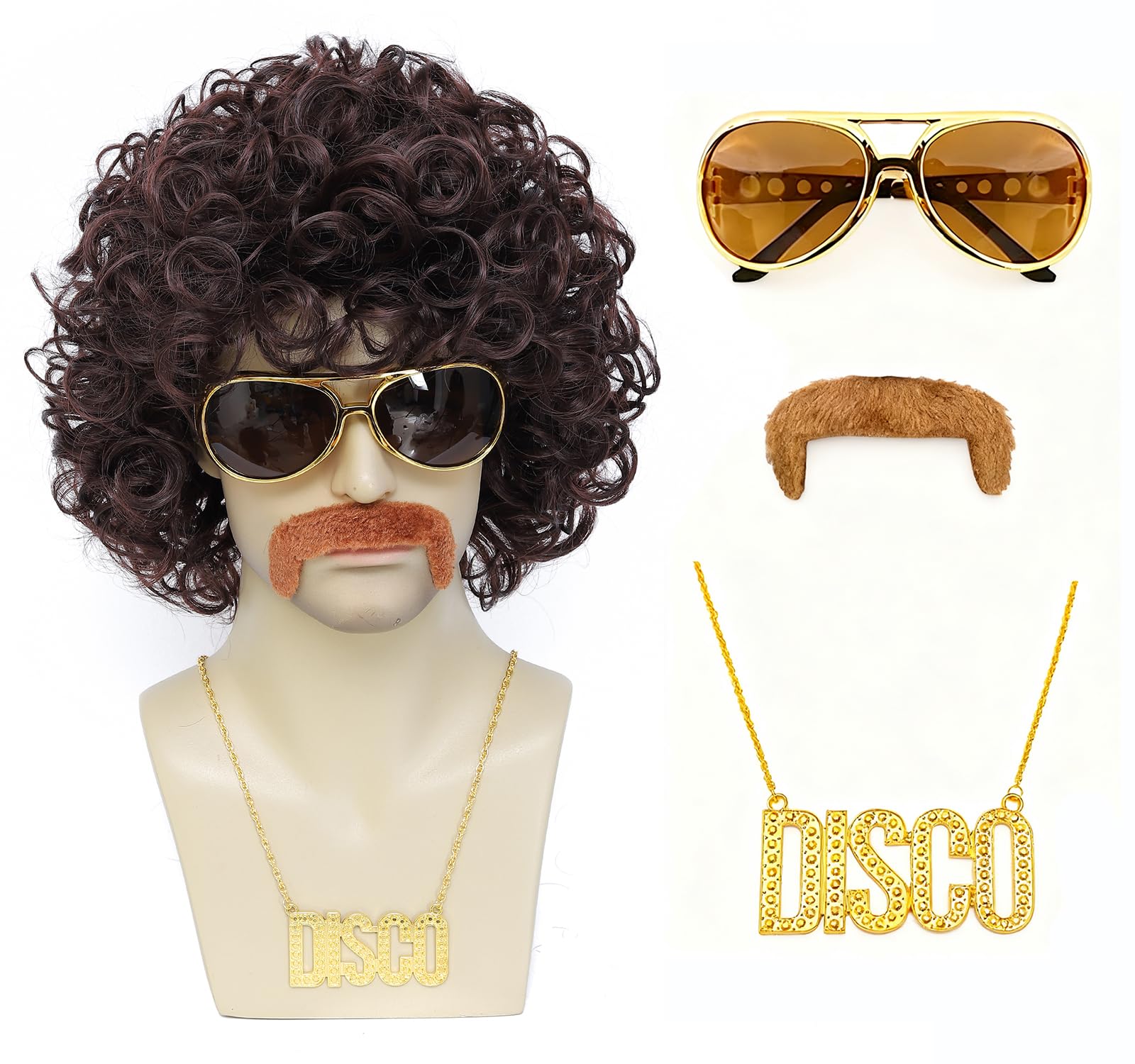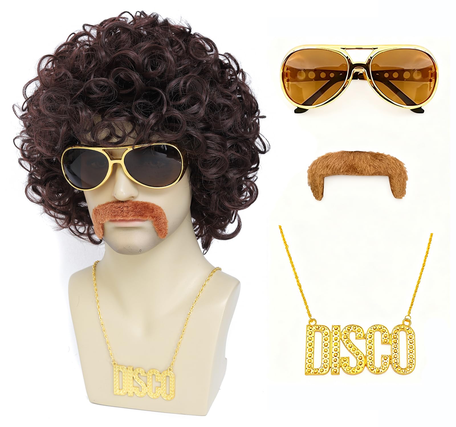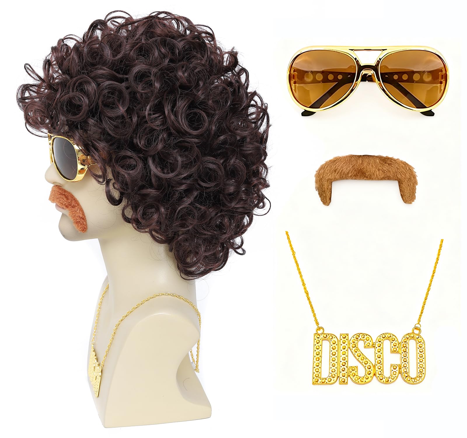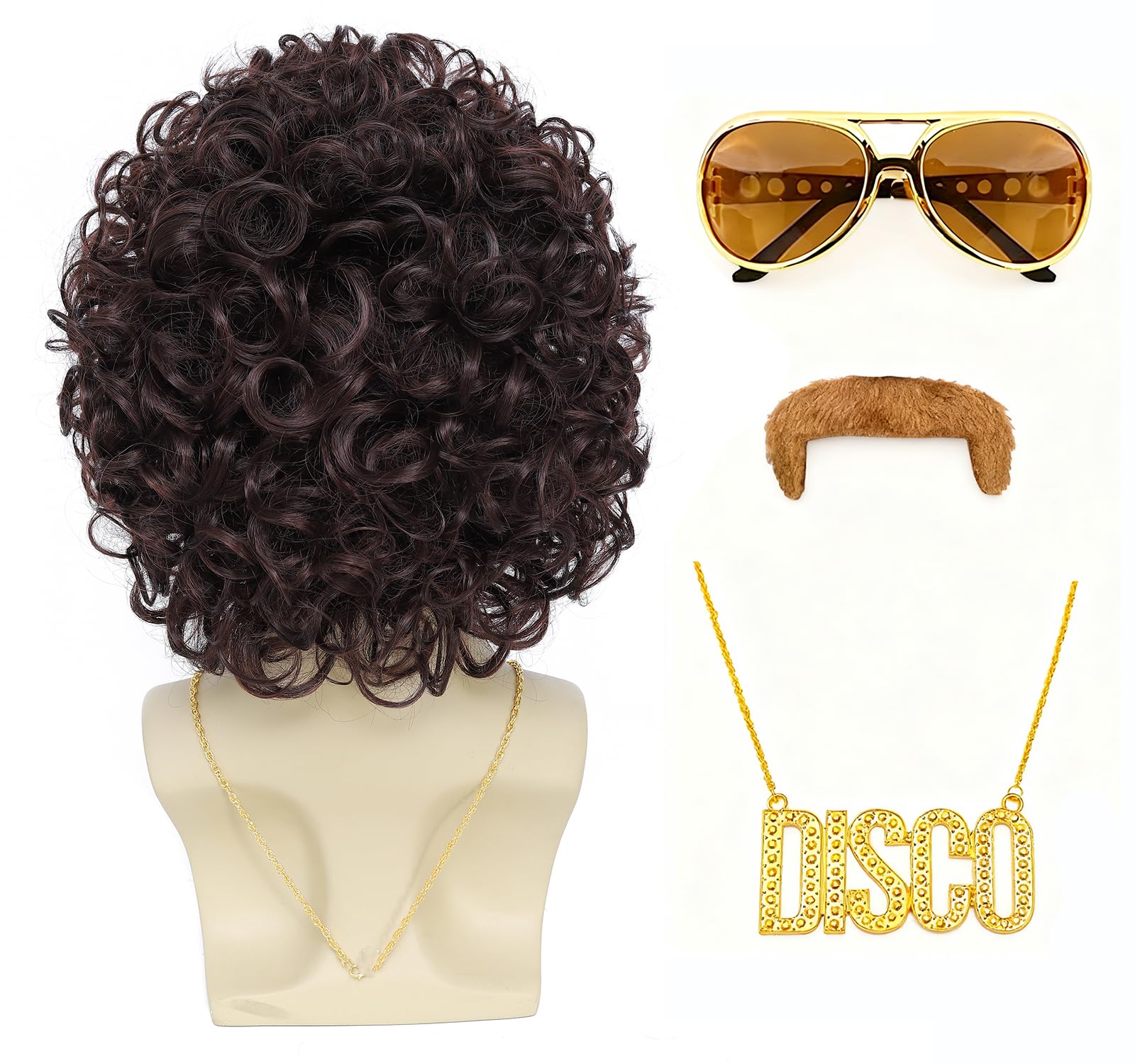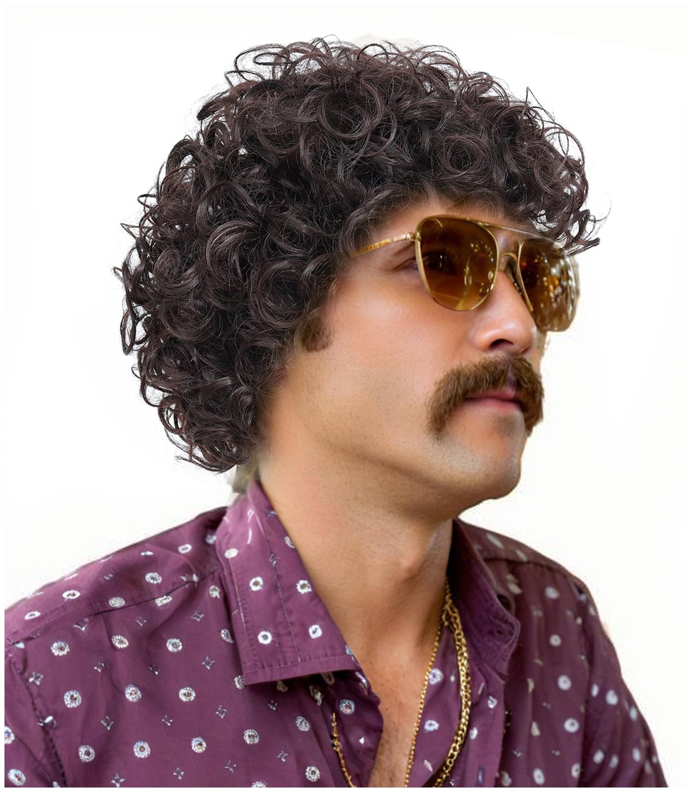 AUTHENTIC STYLE: Premium dark brown curly wig featuring voluminous, natural-looking tight curls perfect for 70s and 80s disco costume looks