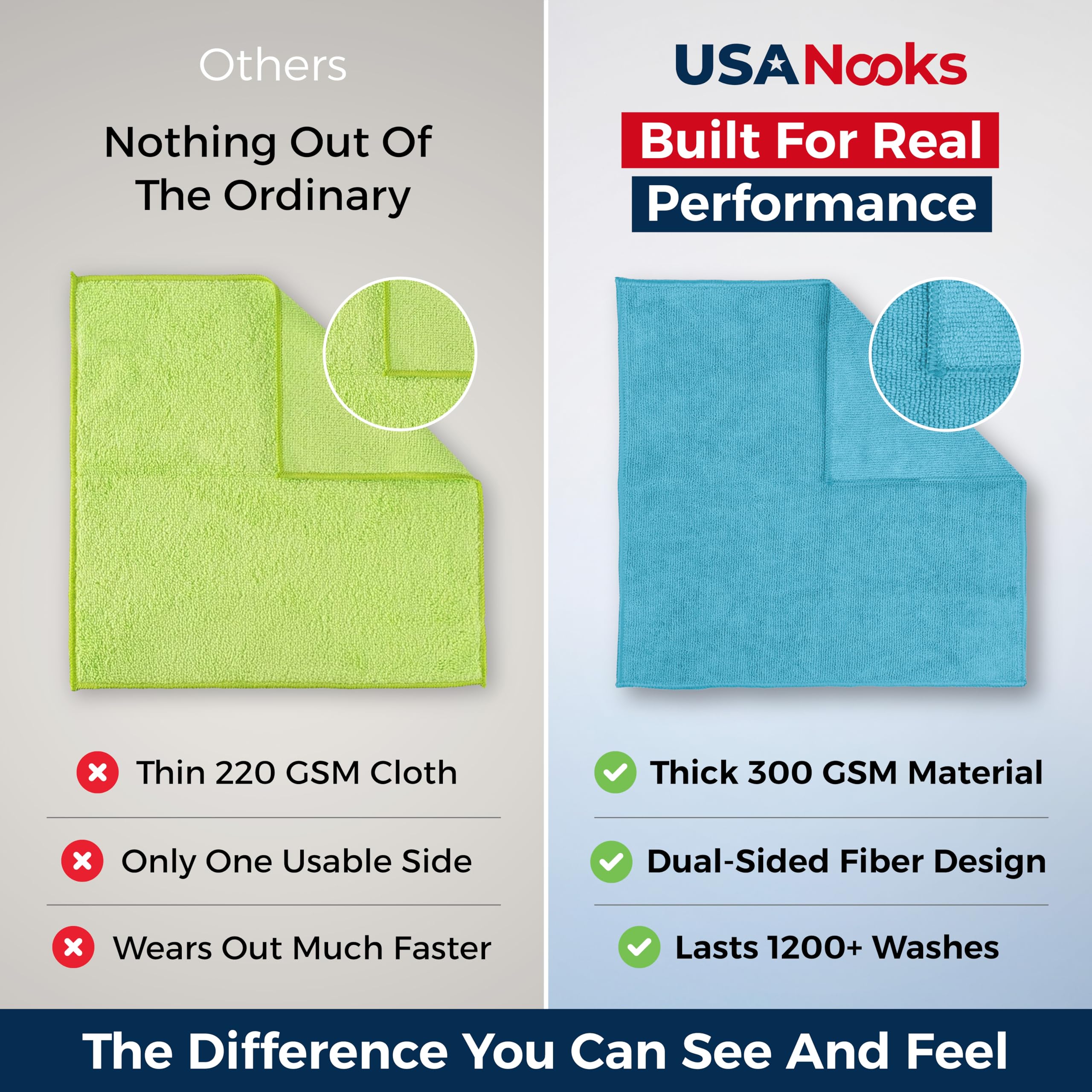 LASTS 1200+ WASHES - That’s 3.27 YEARS worth of use in this 24 pack of COMMERCIAL GRADE 300 GSM microfiber towels. OVERLOCK BRAIDED STITCHING make the ideal SUSTAINABLE SOLUTION for cleaning every SURFACE, CRACK & CREVICE in your home, garage or office. MACHINE WASHABLE, Tumble Dry.