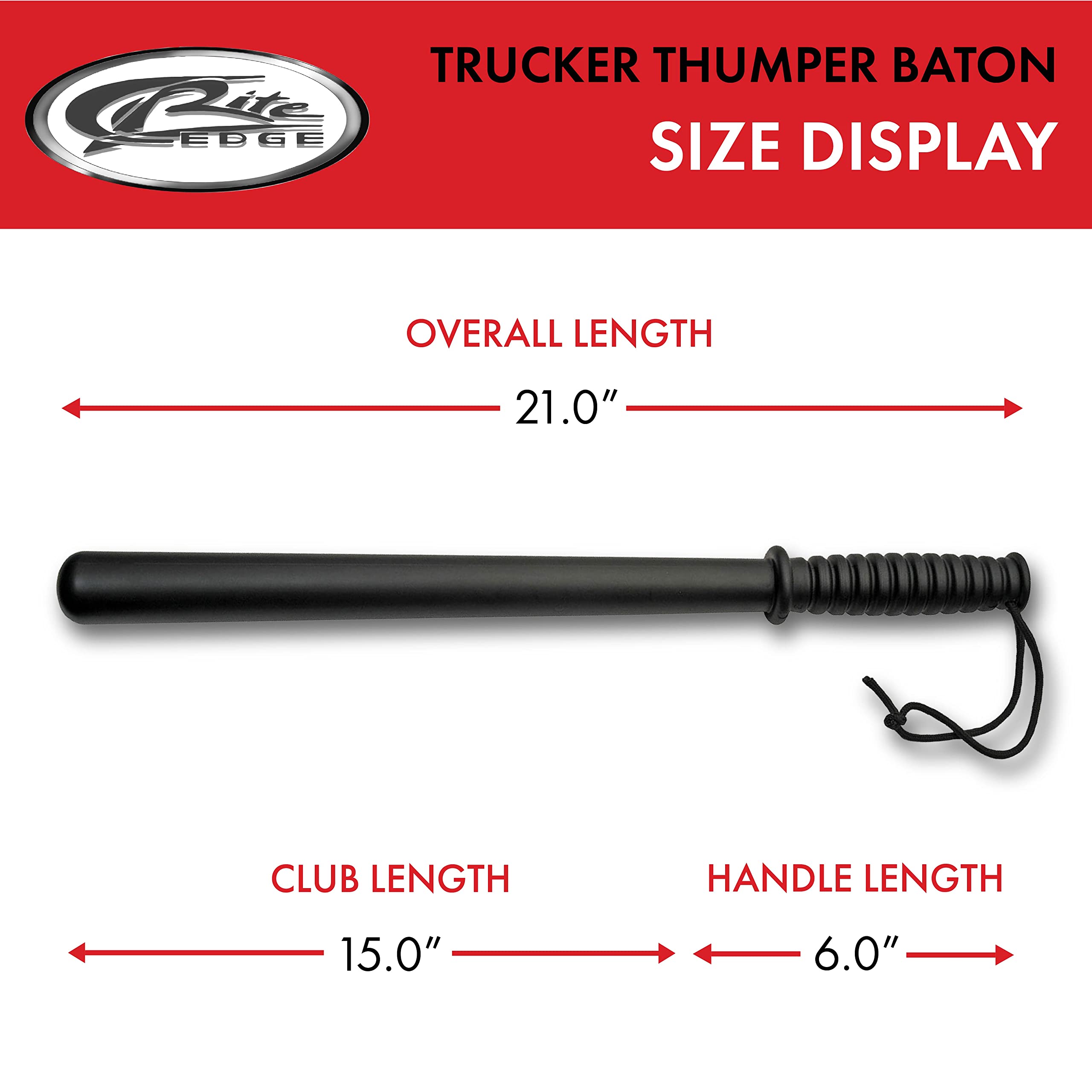 Dimensions: Total length of 21 inches, including a 6-inch ribbed handle for a secure grip. The 15-inch club section features a 4-inch base circumference and a 5-inch head circumference, providing excellent balance.