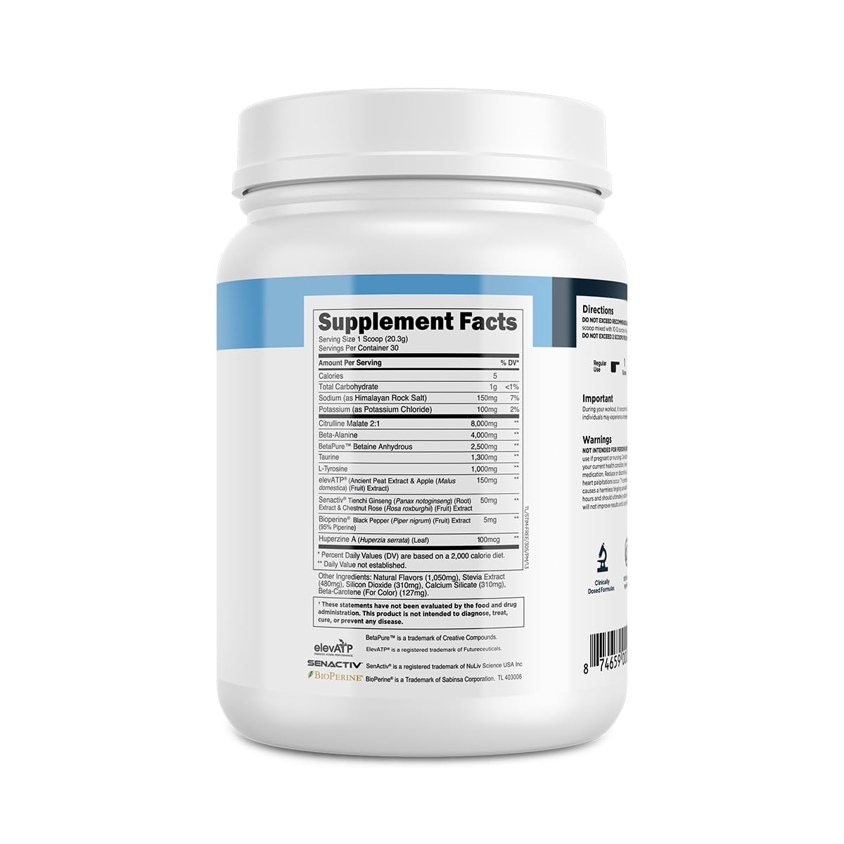 Enhanced Focus and Endurance: The inclusion of L-Tyrosine, Senactiv, elevATP, and Huperzine A in this stimulant-free pre-workout is designed to enhance mental focus, endurance, and overall workout performance.