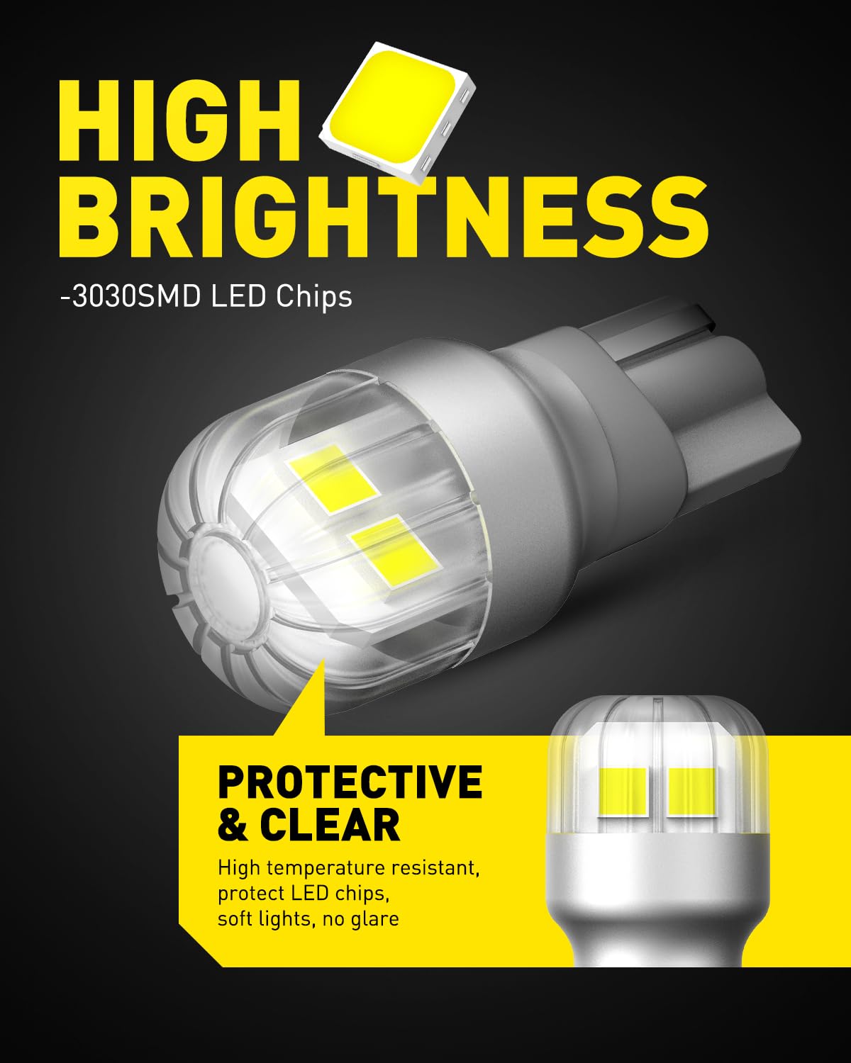 【Stable Use & Longer Lifespan】Energy-saving and hidden hollow-carved and aviation grade aluminum body, expediting the heat dissipation of the led 921 reverse light. With special PC lampshade protecting led chips and components, those 921 led can work up to 50,000 hours