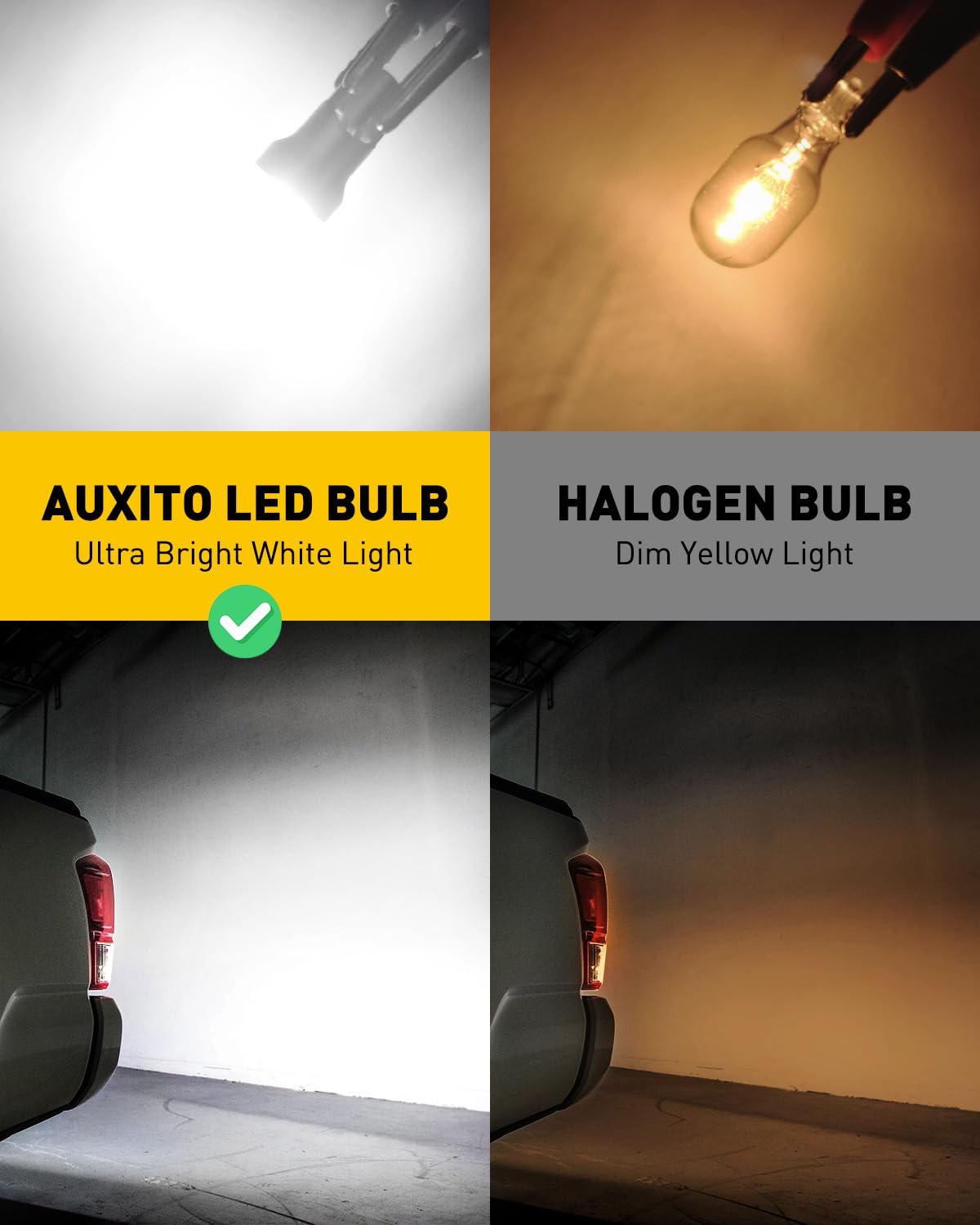 【Ultra Bright & Safer Upgrade】AUXITO 921 led bulbs utilize newest powerful and high quality 3030SMD led chips. Generating 400% brighter output and larger lighting area than halogen, see more clearly when reversing. Keep safe