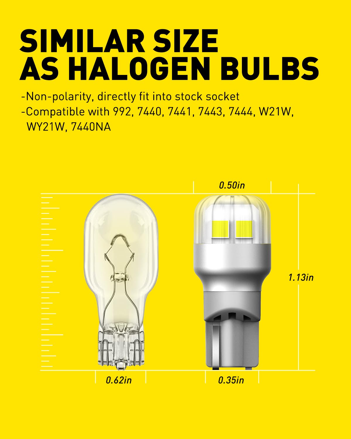 【Directly Fit & Multi Application】Non-polarity, plug and play for stock 921 led backup reverse lights, 921 third brake lights,etc. Compatible with socket T15, 912, 921, 906, 904, 902, 922, W16W, etc.