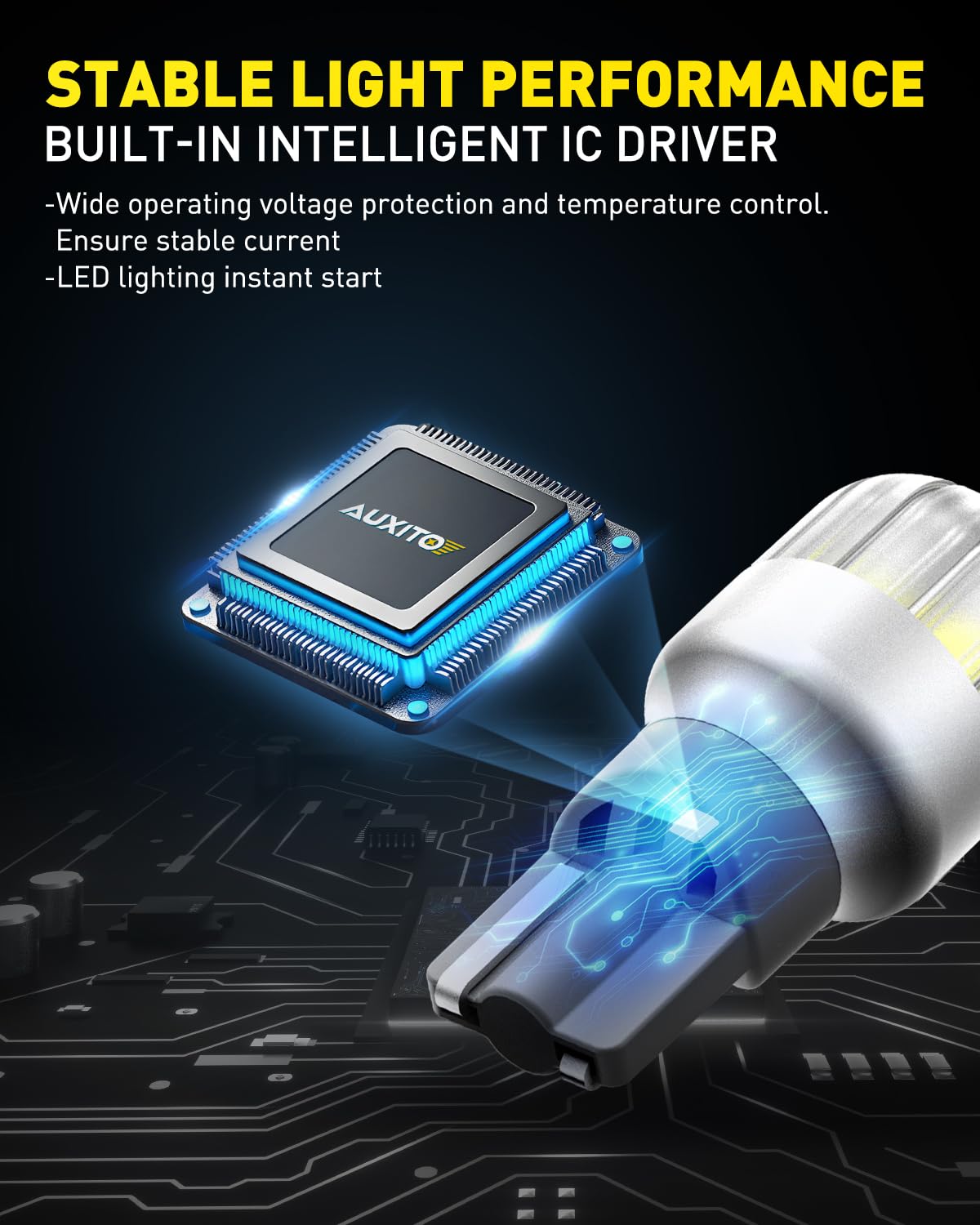 【Awesome Pattern & Full Brightness】AUXITO design those 921 912 bulb with scientific theory with almost 1:1 shape and same light emitting point. Giving 6000K fuller light in your lens, more stylish and clean