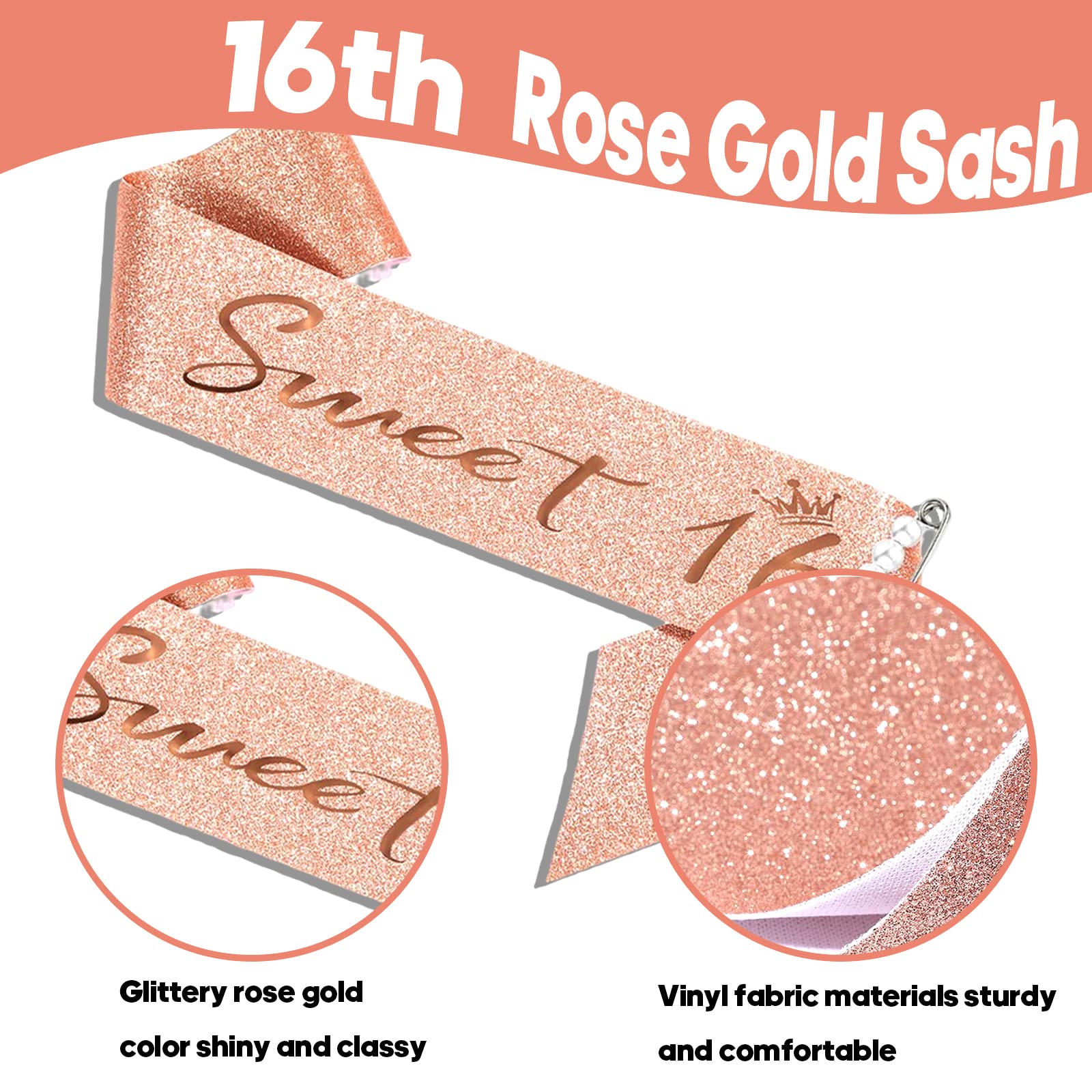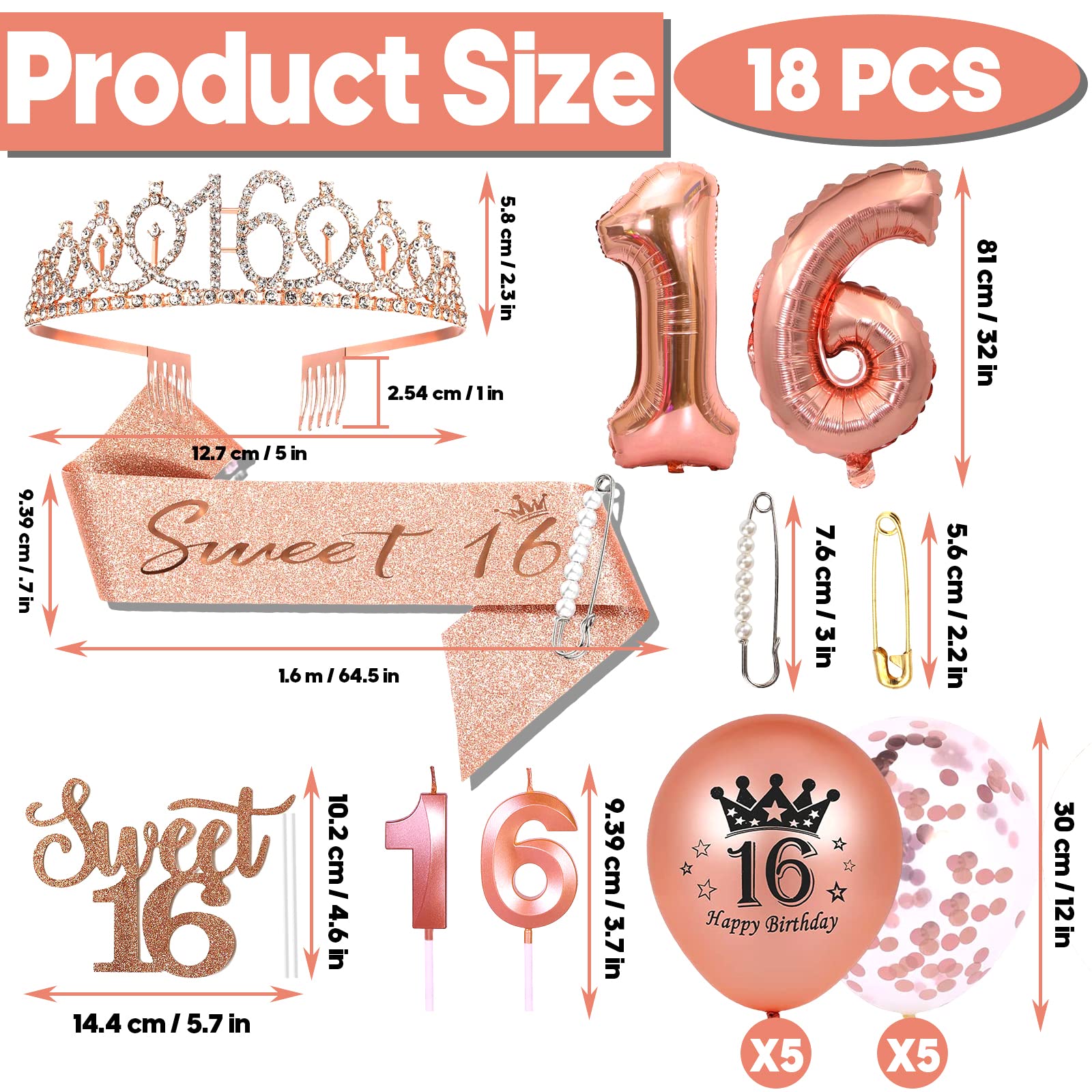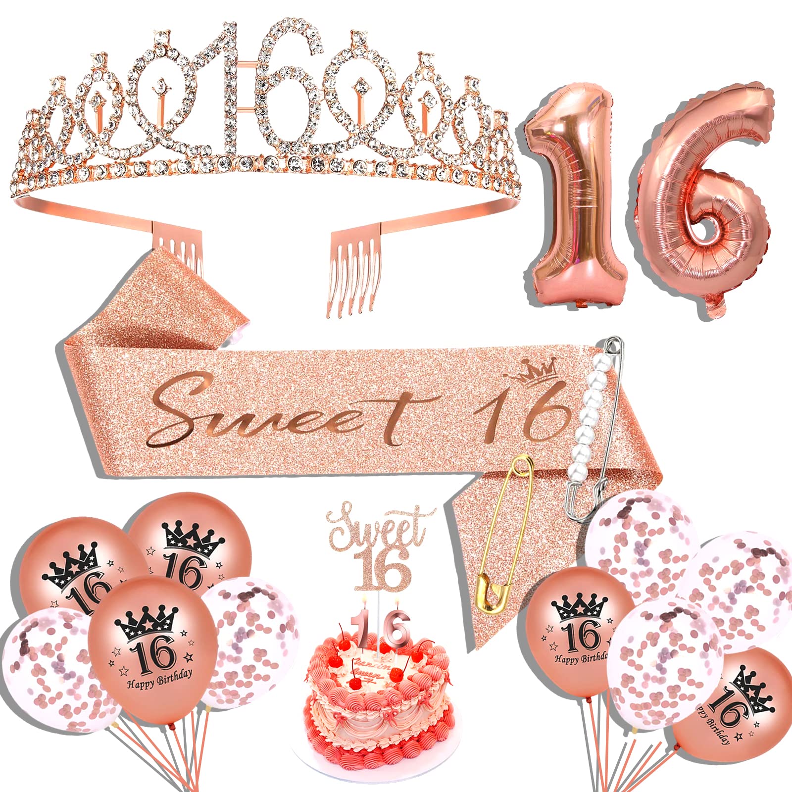 【16 Birthday Decorations For Girls】: Package coming with rose gold sweet 16 crown 1pc, 16th birthday sash 1pc, sweet 16 balloons 12pcs, sweet 16 birthday cake topper 1pc, 16 birthday candles, this birthday gift for women remind her and everyone in the 16th birthday party how fabulous