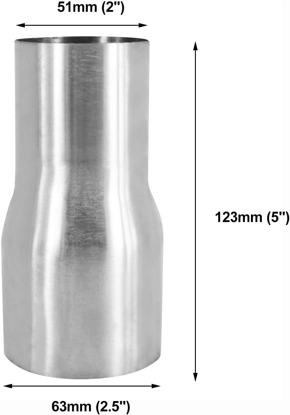 【 Material】: The2." ID 2.5" OD Exhaust Reducer Adapter is constructed with 304 Stainless steel. It is totally rust and corrosion resistant.