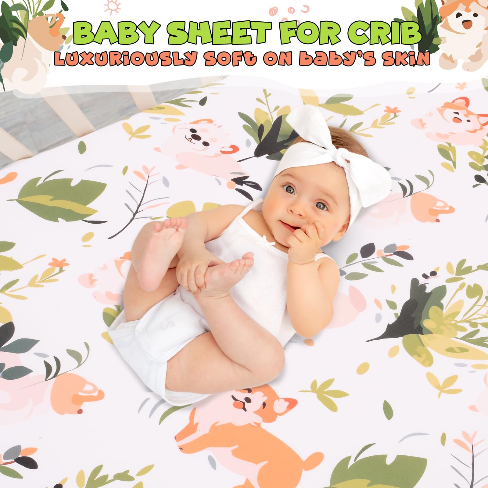 【PERFECT FIT】Dimension 52*28*5‘’.The dog fitted crib sheet for baby fits all standard crib mattress,making this item perfect for transitioning your little one from their crib to a toddler bed.The elastic band design ensures that the sheet stays securely in place, minimizing any sliding or shifting.