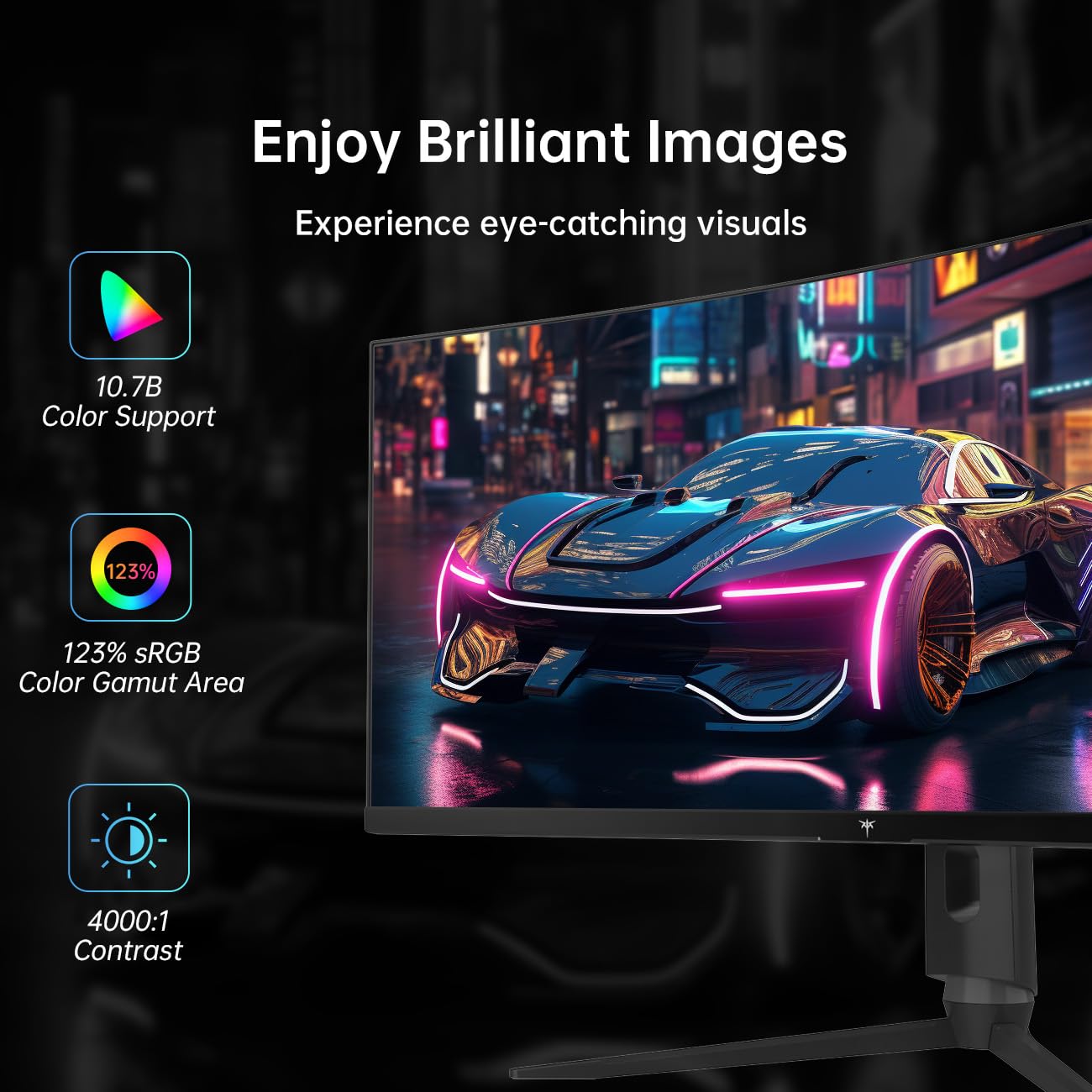 Ultrawide QHD Curved Monitor: 34 inch 1500R curved display with 21:9 aspect ratio and WQHD 3440X1440 resolution, immerses you in a world of nuanced detail