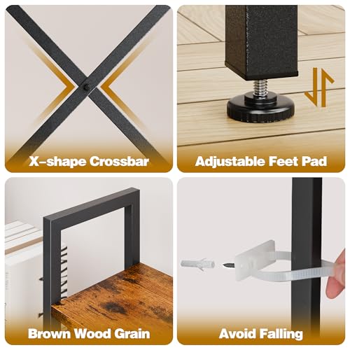 Safer and More Stable: The wide bookshelves are specially designed with X-shaped crossbars on the back for enhanced stability and durability. Furthermore, the anti-tilt brackets allow for secure fastening to the wall for further enhancing safety and stability . Additionally, adjustable Feet to keep balance to prevent any wiggle or floor scraping.