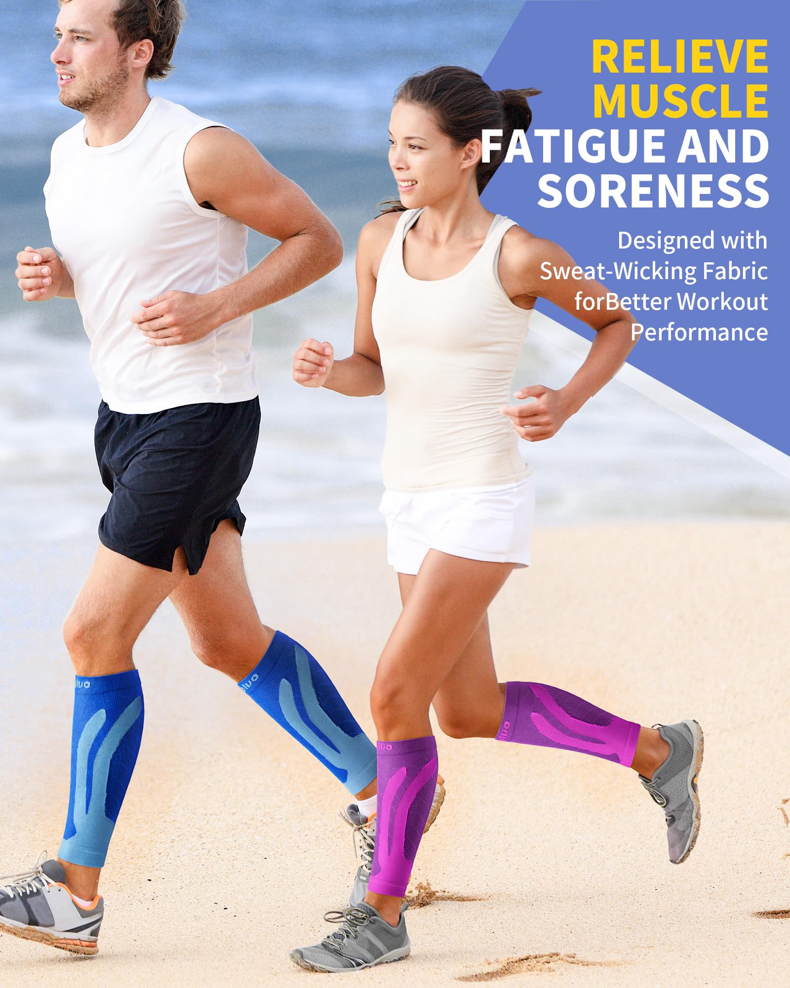 Varicose Veins Treatment for Legs - Leg compression sleeve promotes circulation by applying pressure on your lower legs and pushing blood back toward the heart; calf sleeves help reduce pain from swelling, varicose veins, and leg cramps; shin guard sleeves for shin splints relief; the compression socks without feet offer greater flexibility and versatility; easier to wear than full compression socks while allowing your toe and ankle to breathe and stay cool