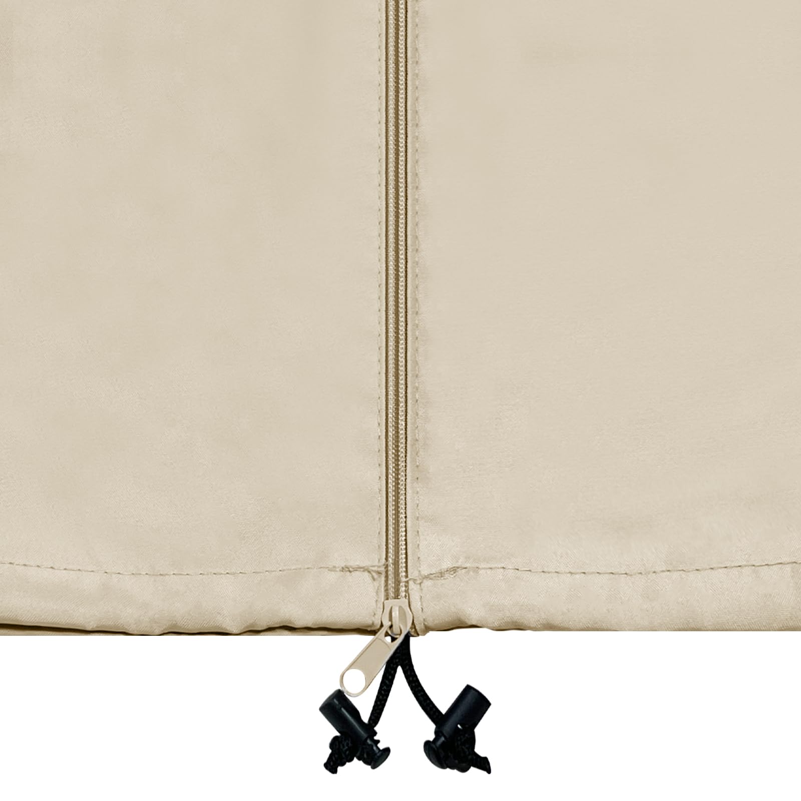 Integrated Protection Systems: Patio umbrella covers with zipper. Elastic hem cord with adjustable toggle and hook & loop at the bottom makes it won't blow away in the wind