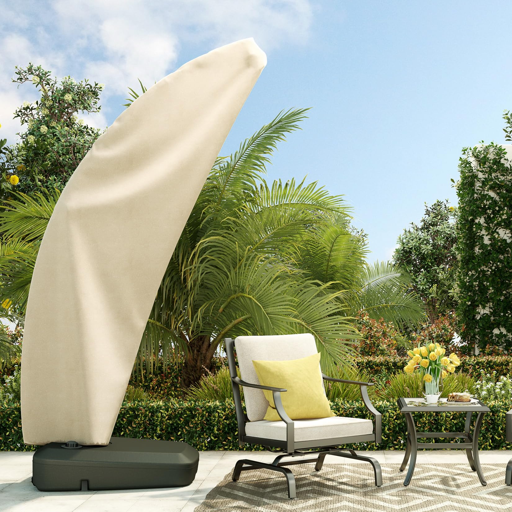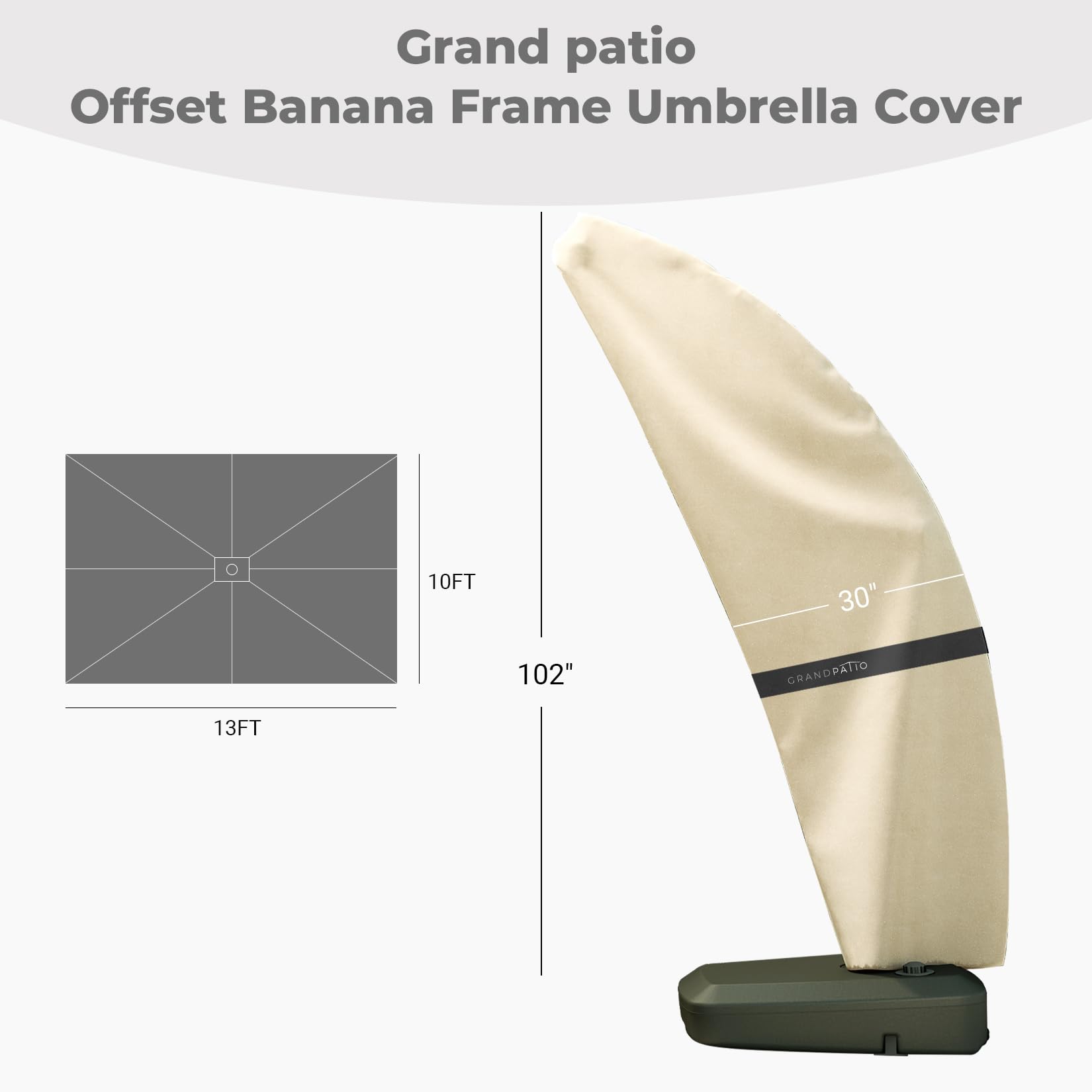 Grand Patio offset patio umbrella cover is designed to offer your patio umbrellas the best protection. Our outdoor Umbrella covers are made of High quality PVC coated oxford fabric. These brand new umbrella covers for patio umbrellas are stable yet lightweight. Our large umbrella covers are UV protective, rain and dust resistant.