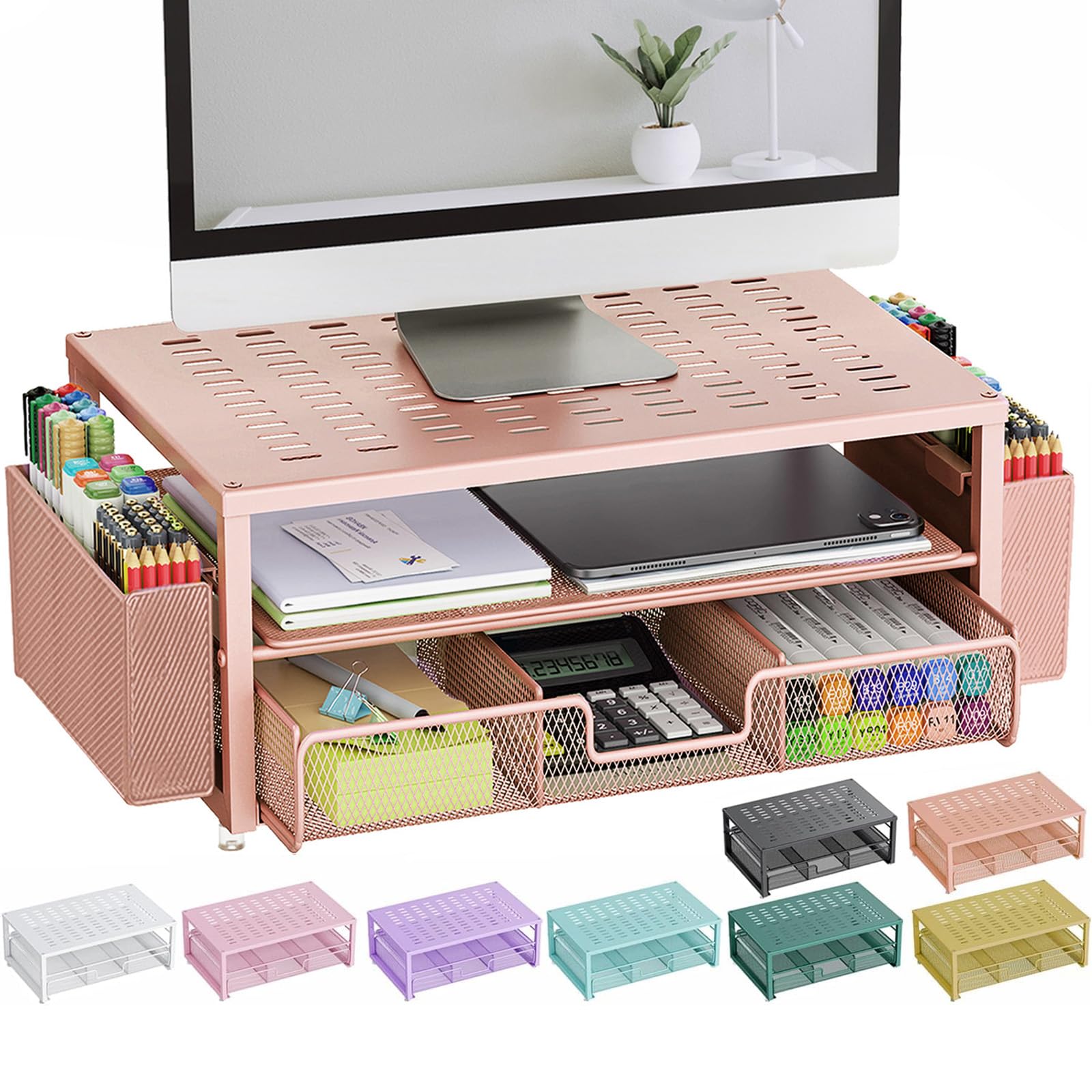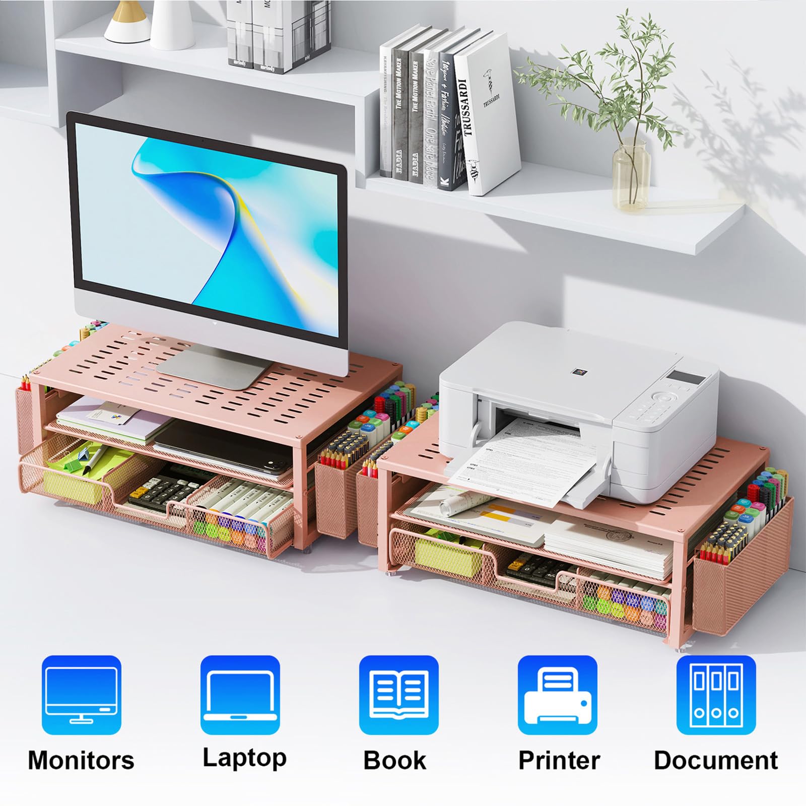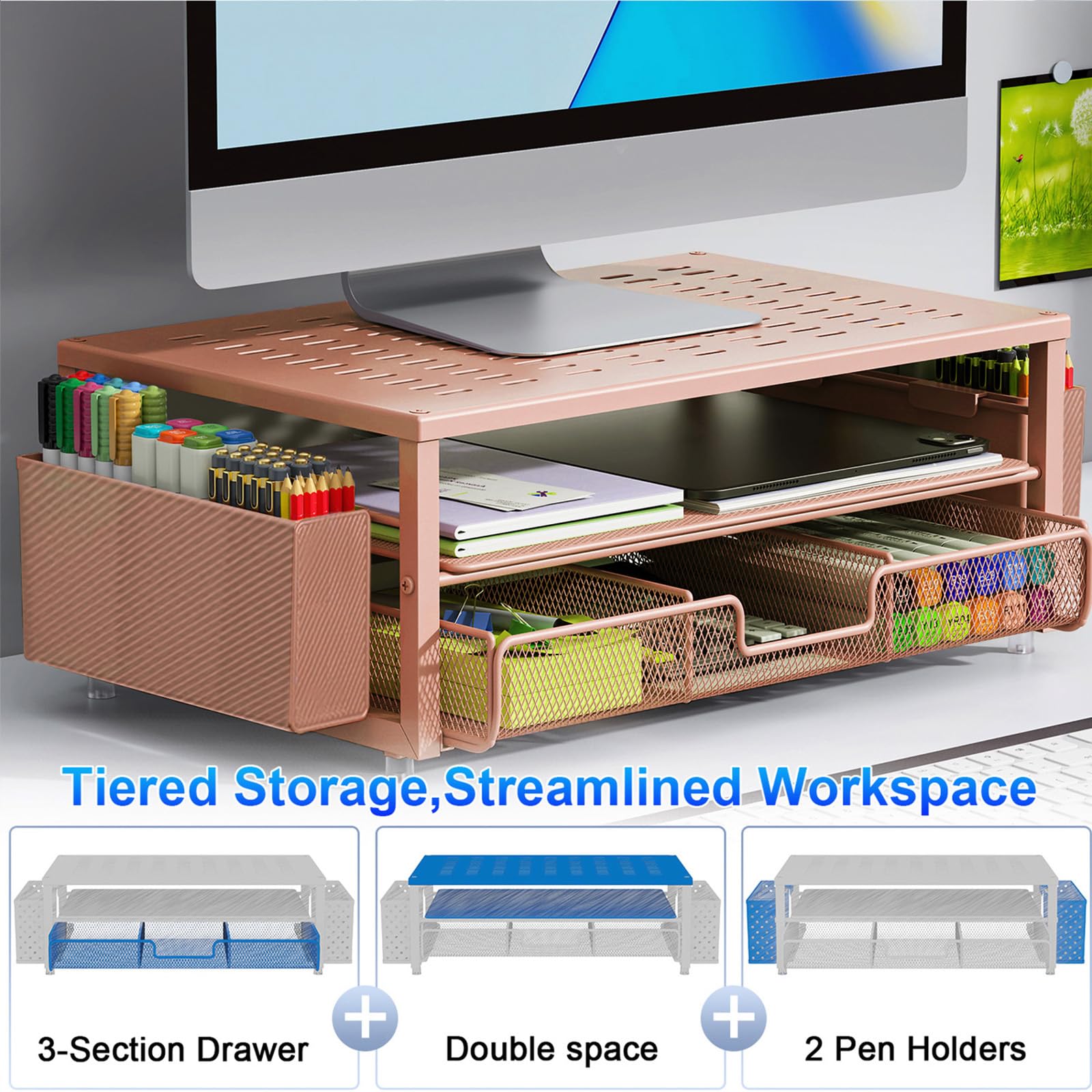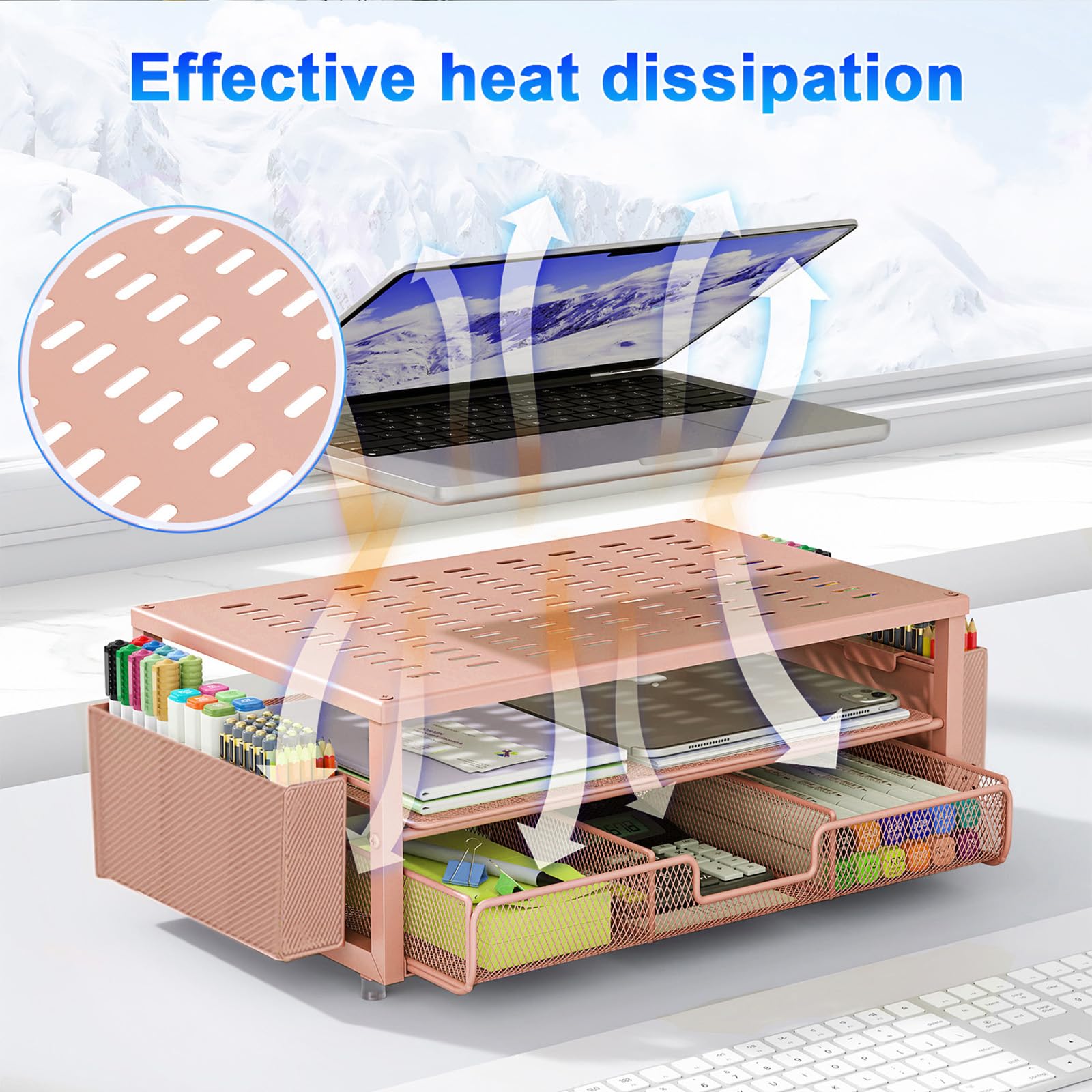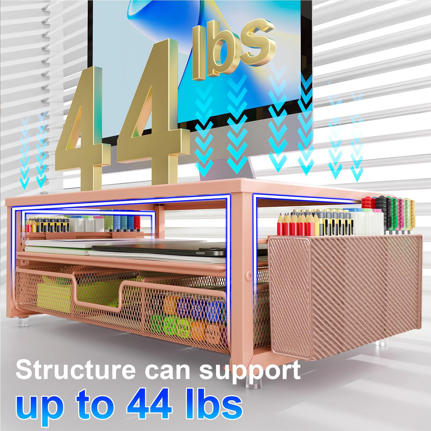 【Unique Desk Decor】: The monitor stand has a classic rose gold coating, adding elegance and modernity to your office while being sturdy and practical. allowing you to work in a cozy and tidy environment with greater comfort and efficiency.