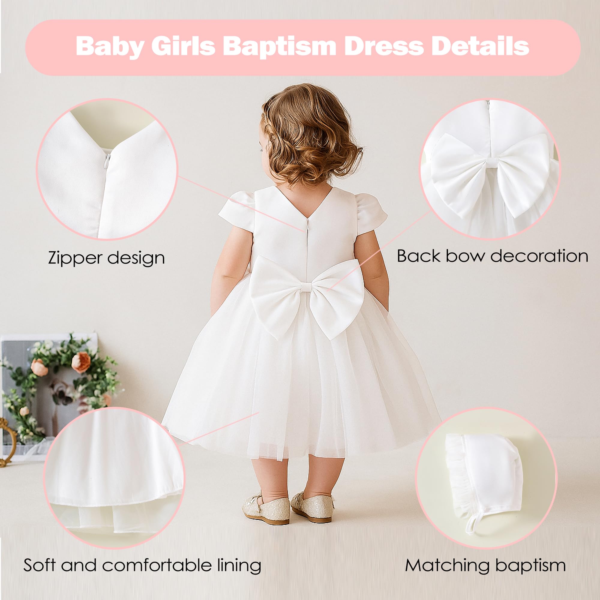 Baby Baptism Dress Material: Baptism dresses for baby girls is cotton fabric,breathable and soft,safe and gentle,against even the most sensitive skin.So our baby dedication outfits girl is comfortable for baby girls to wear and play.