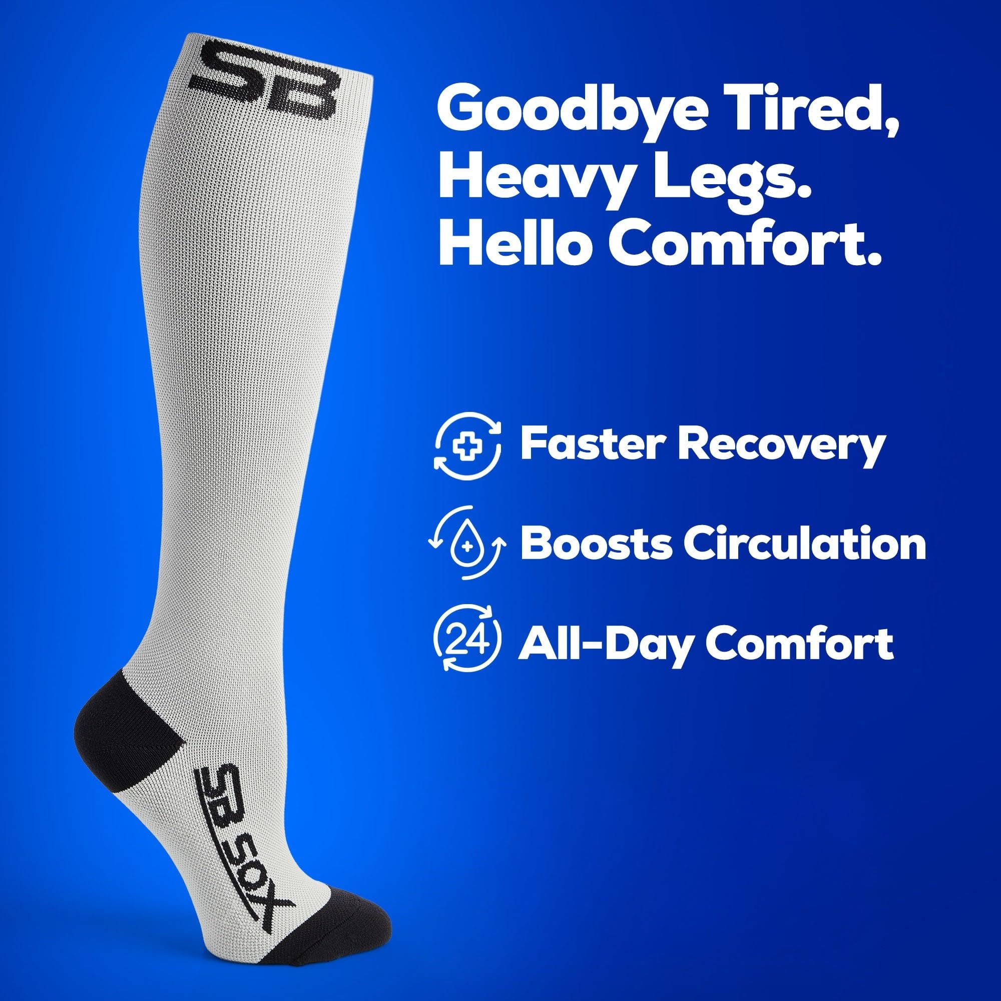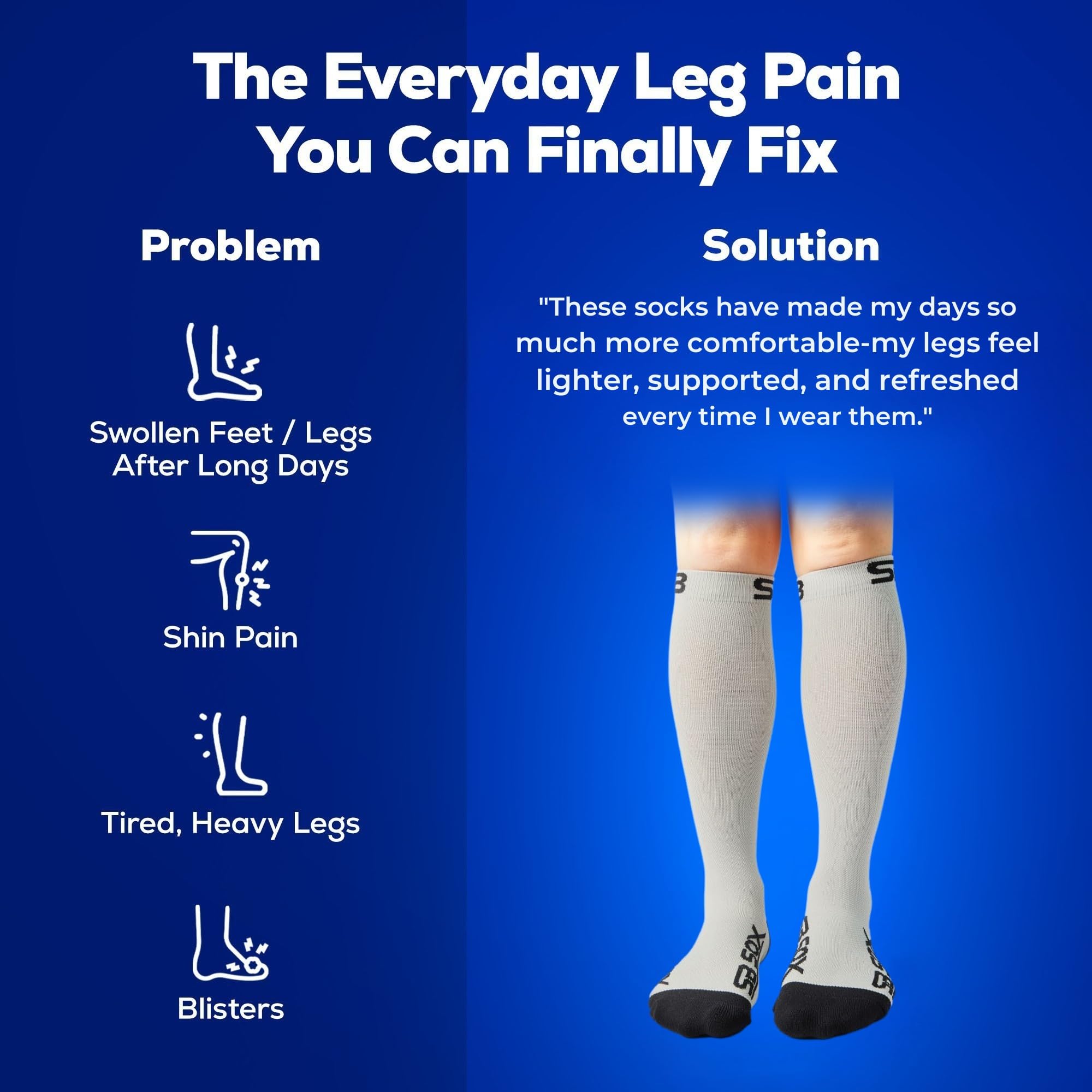 Improve Blood Circulation: Our compression socks boost your blood circulation and relieve leg pain, swelling, and fatigue. A must-have for anyone in need!