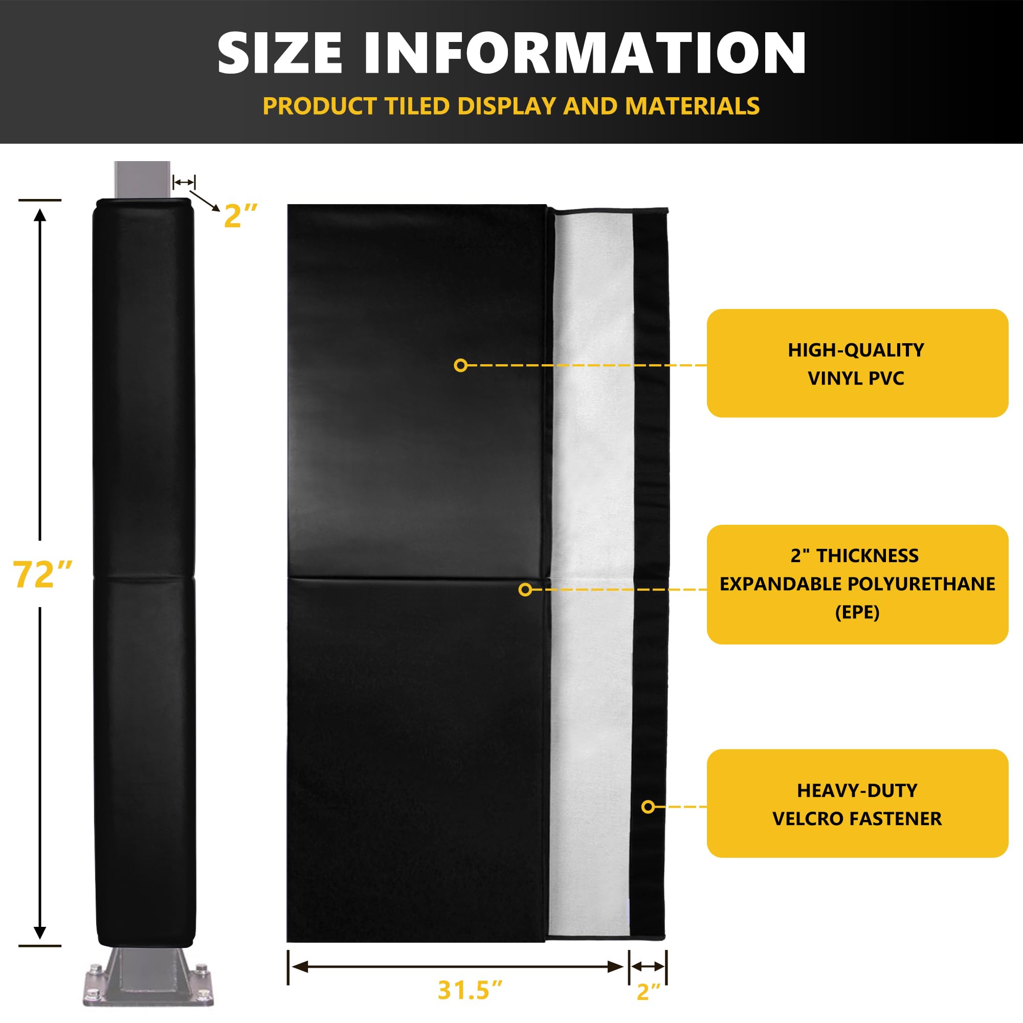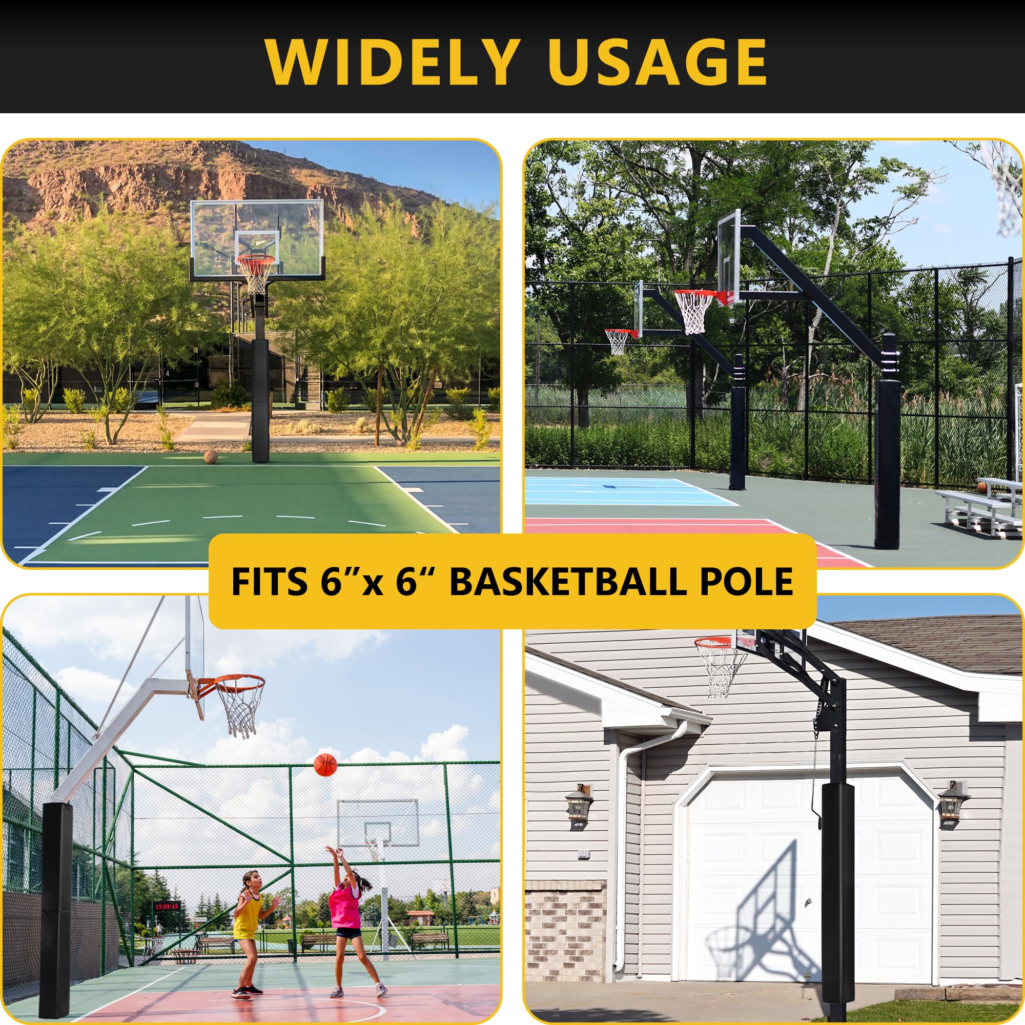 【Square 6" x 6" Fixed Height Basketball Pole Pad】Our 72" tall & 2" thick heavy-duty indoor & outdoor vinyl pole pad cushion provides ultimate protection against pole impact. Compatible with square 6 x 6 Inch basketball hoop poles. 【The back of the protective pad features a Whole Piece of Velcro】